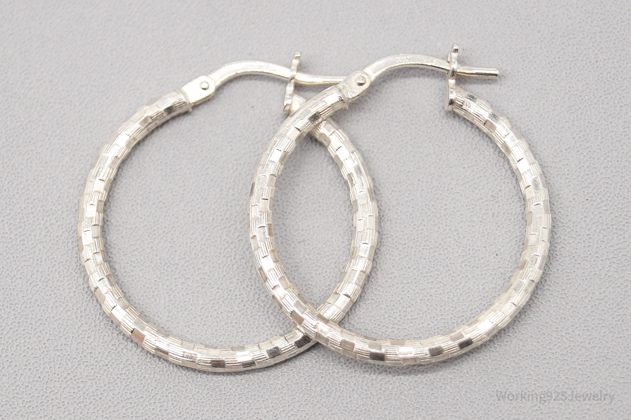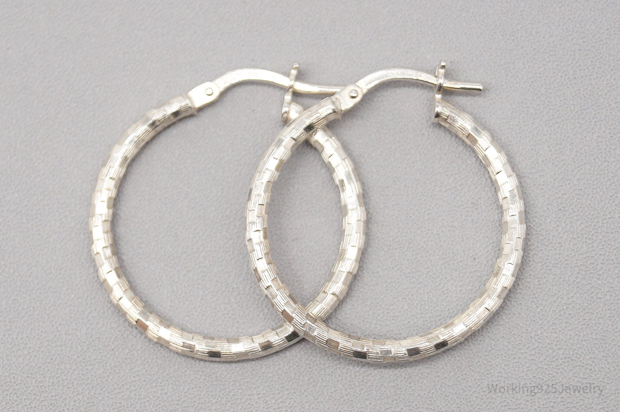 Vintage Italian Puffy Twist Sterling Silver Hoop Earrings