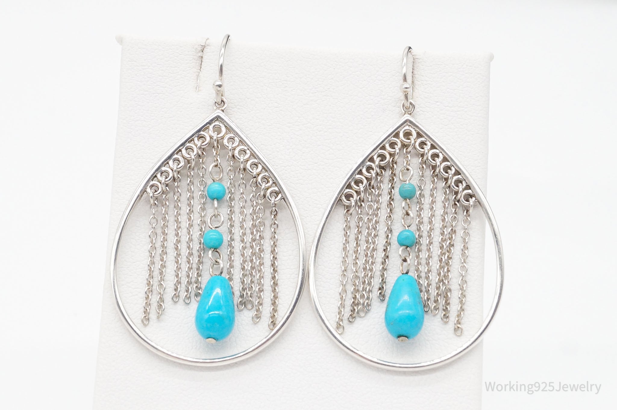 RARE Vintage Mexico Modernist Fish Turquoise Sterling Silver Brooch Pin & Earrings Set