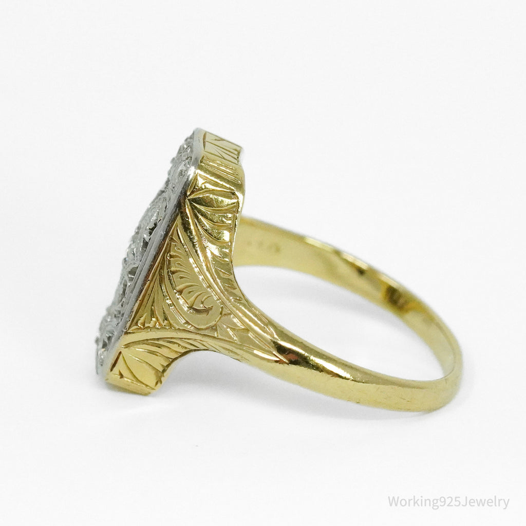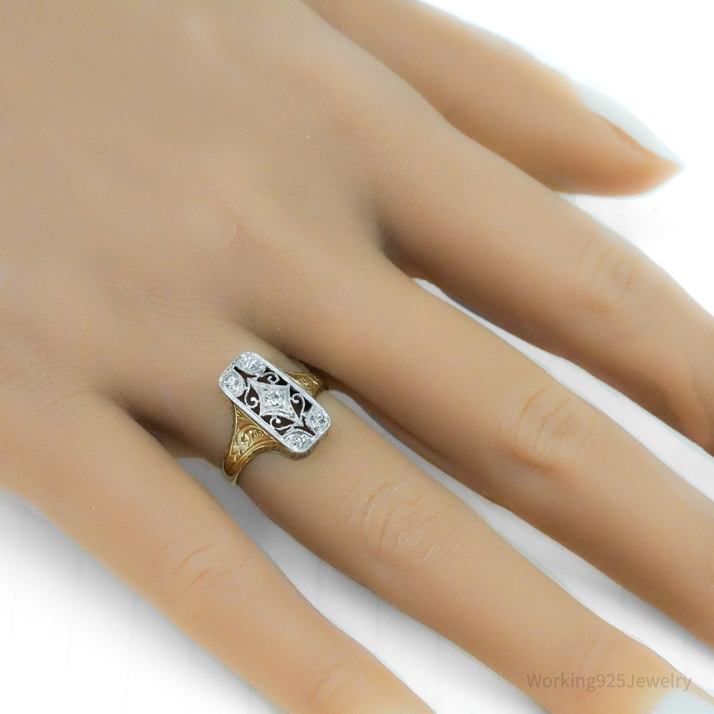 1920s 14k Yellow Gold & Platinum European Cut Diamond Ring - Size 5 1/4