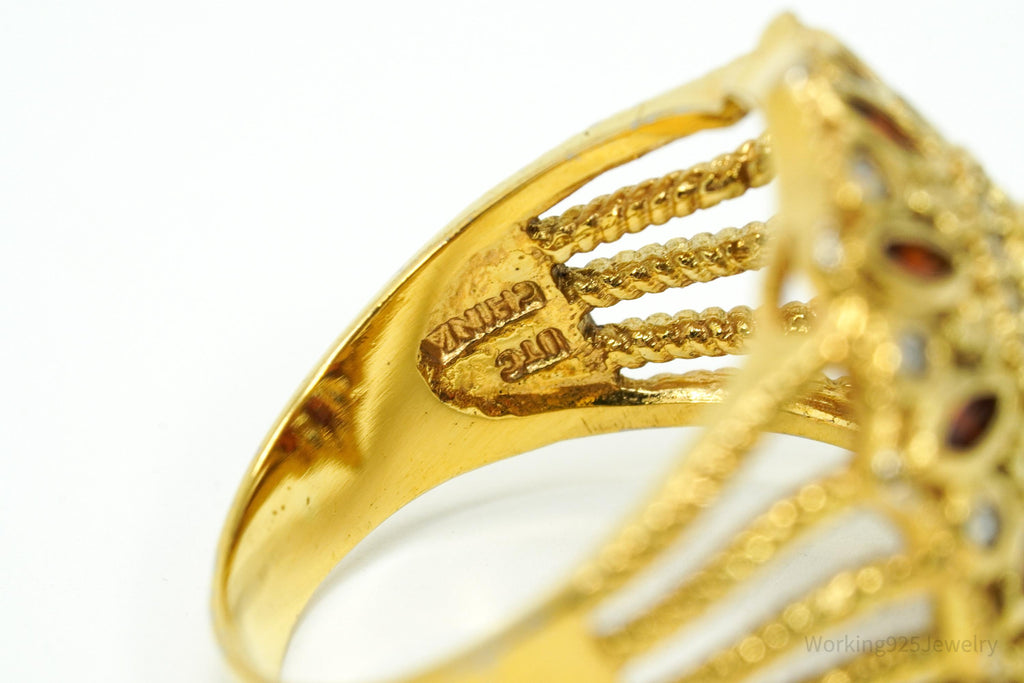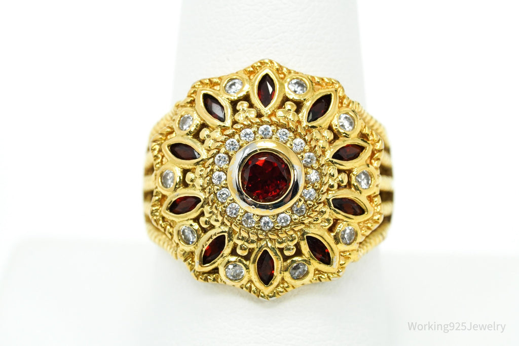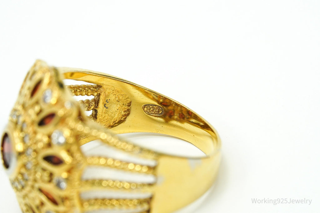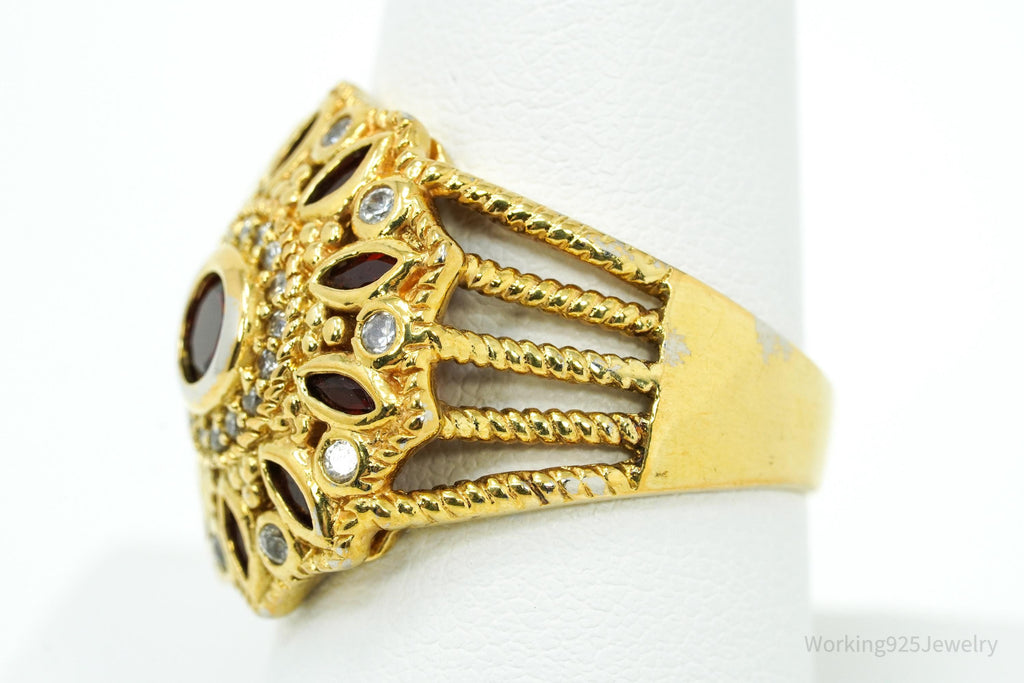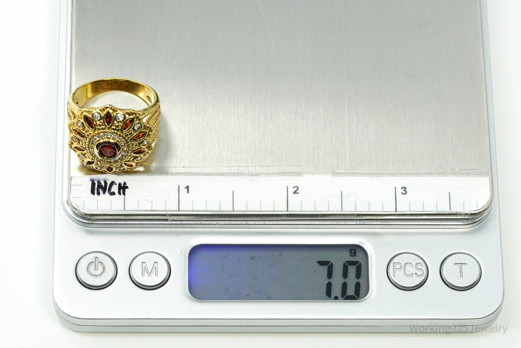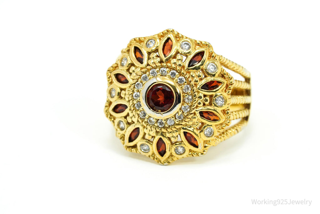 Almandine Garnet & Cubic Zirconia Gold Over Sterling Silver Ring Size 8.75