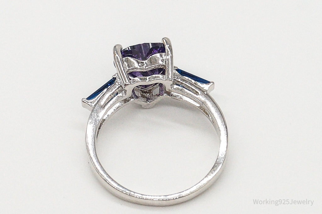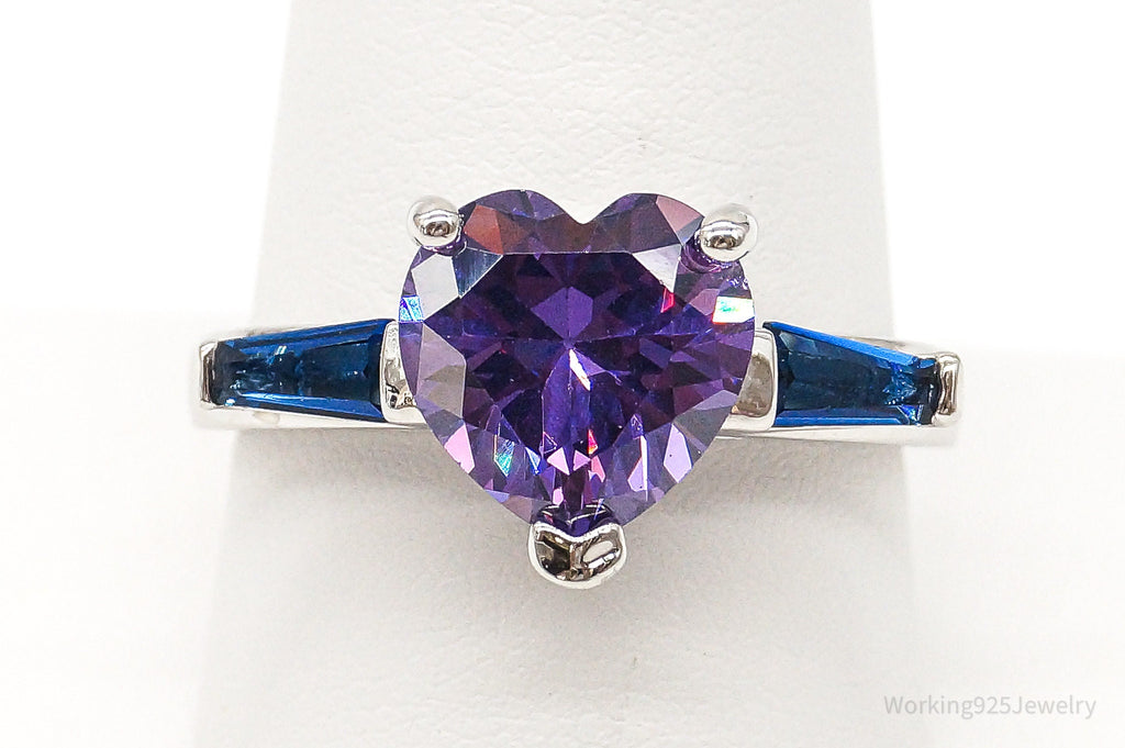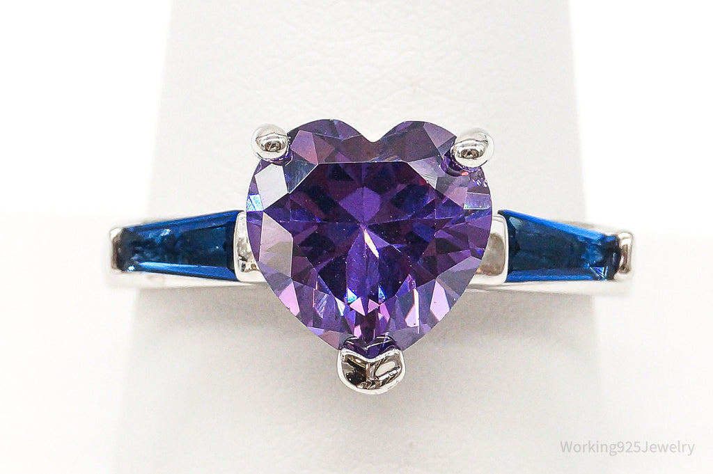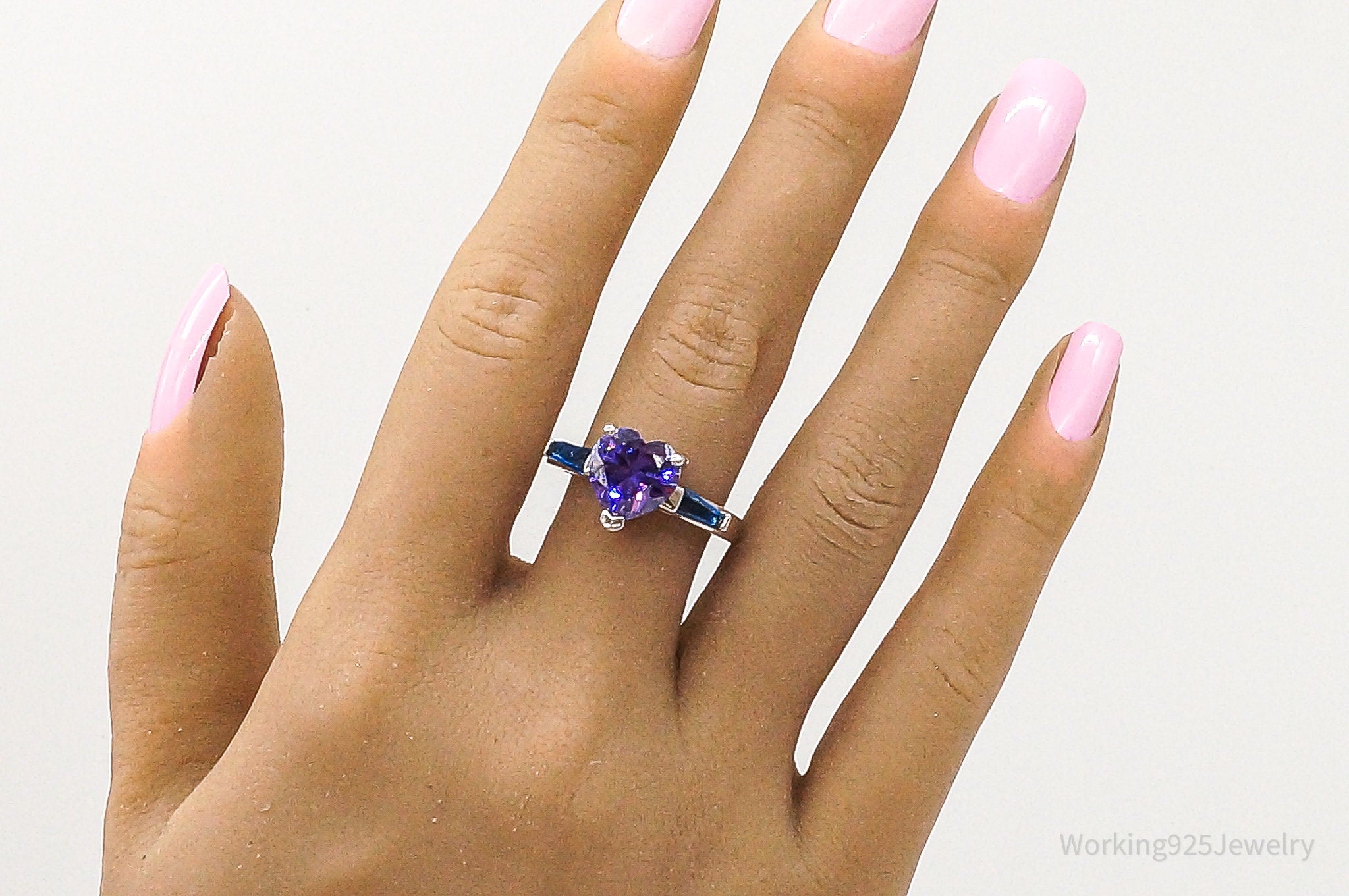 Amethyst Heart Lab Sapphire Sterling Silver Ring - Size 9.75