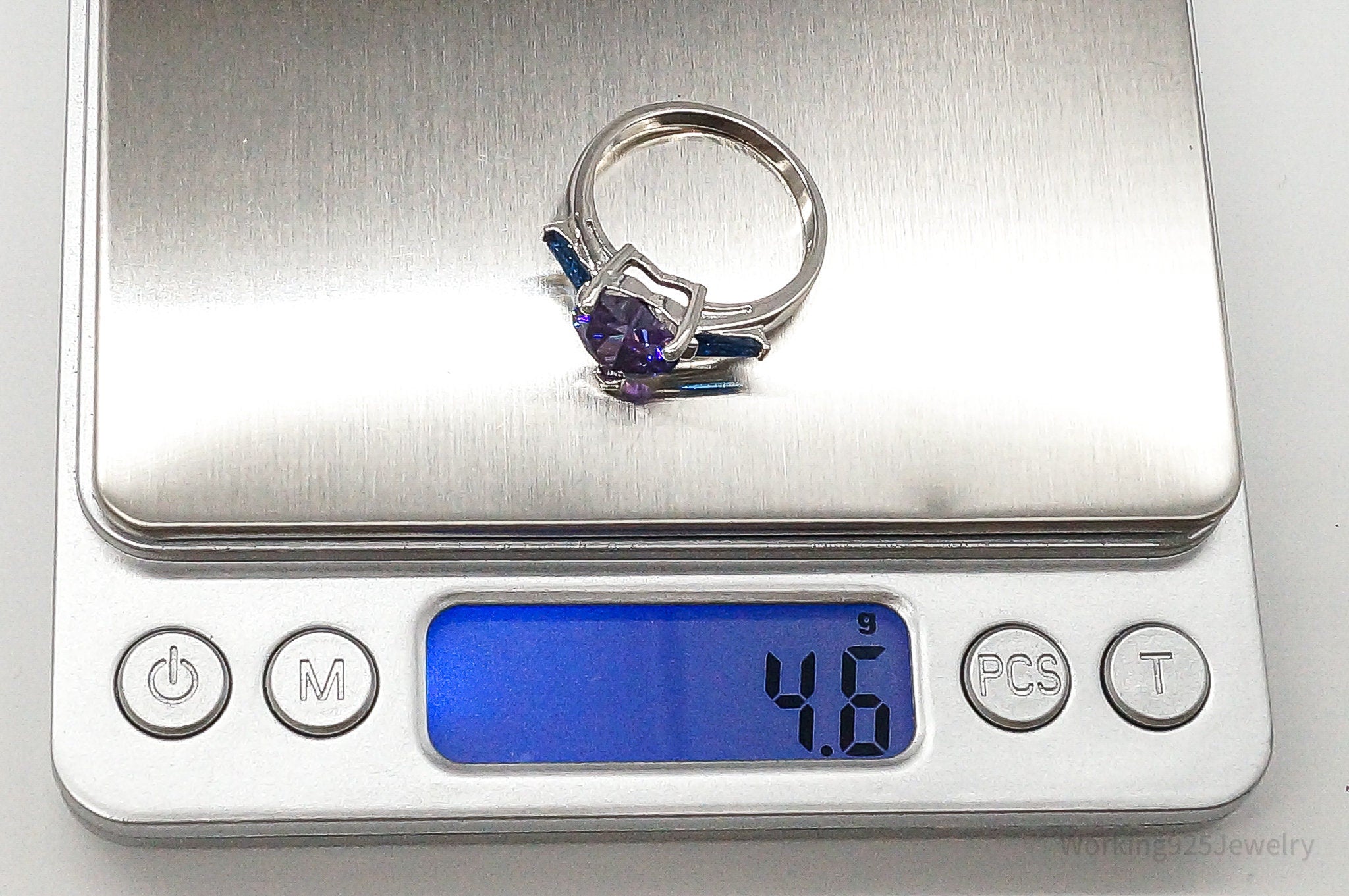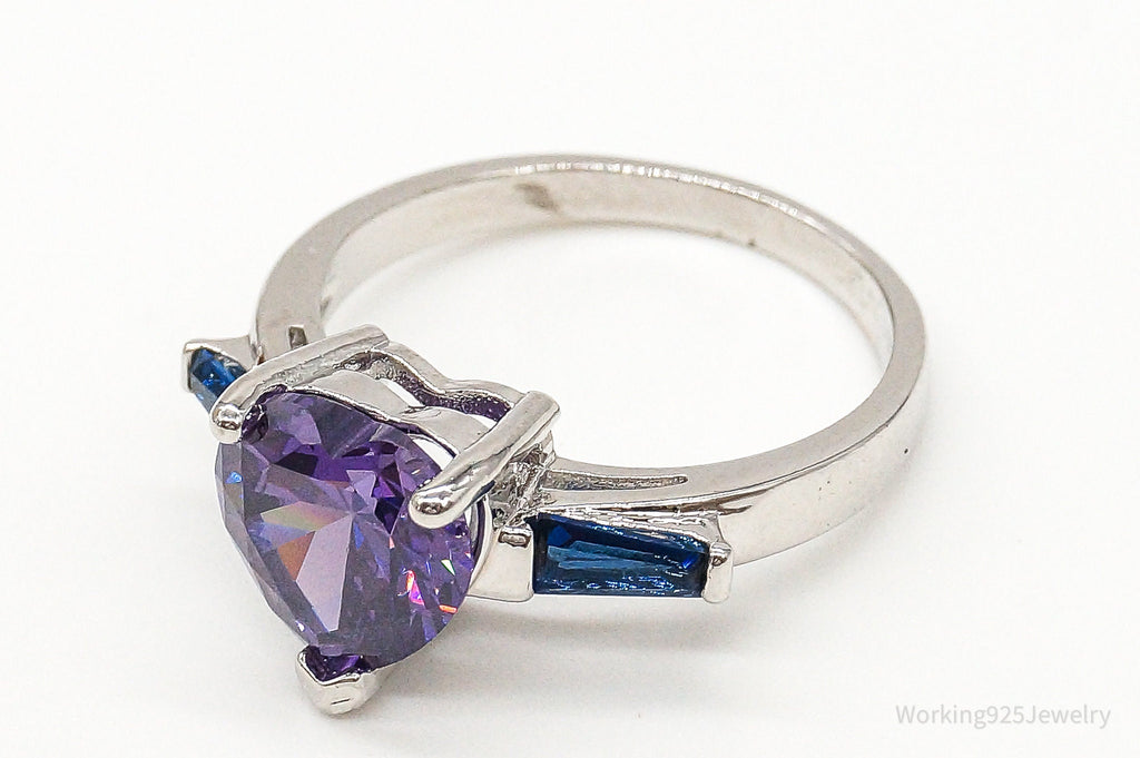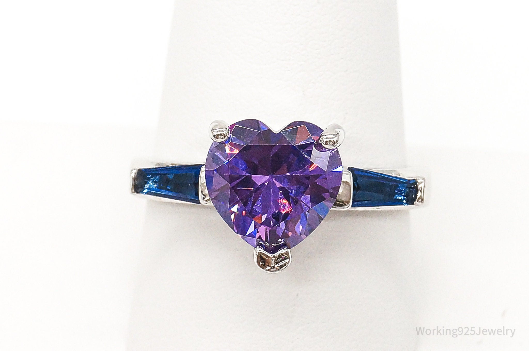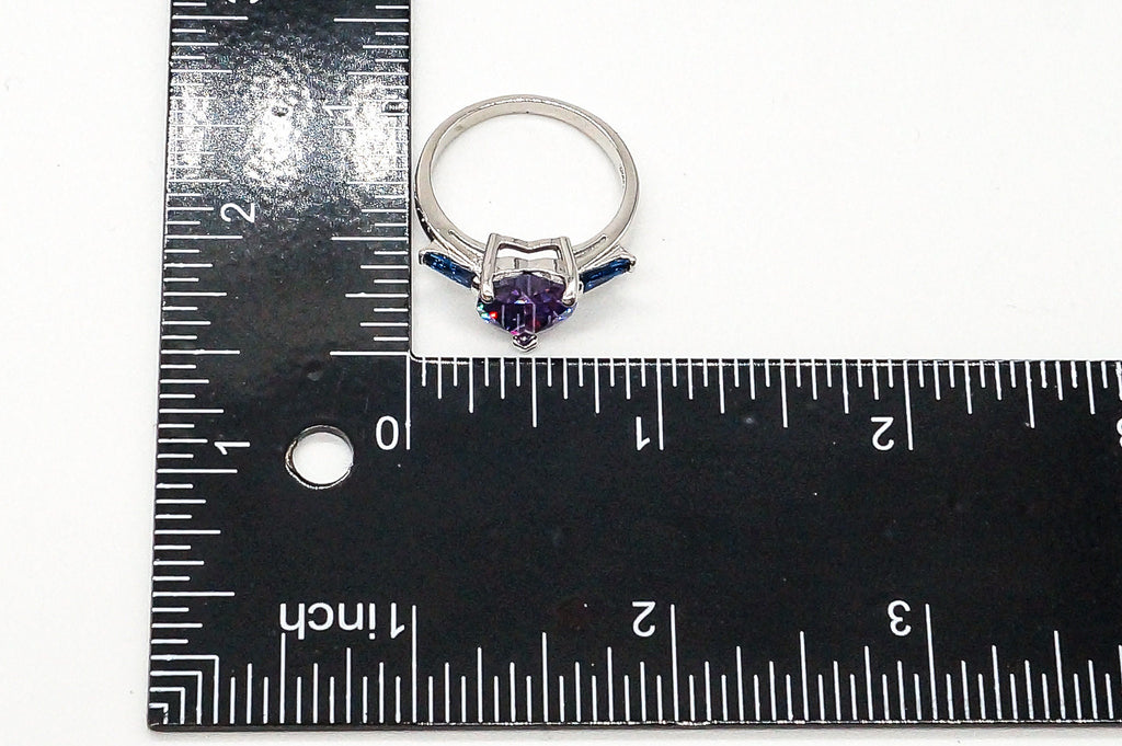 Amethyst Heart Lab Sapphire Sterling Silver Ring - Size 9.75