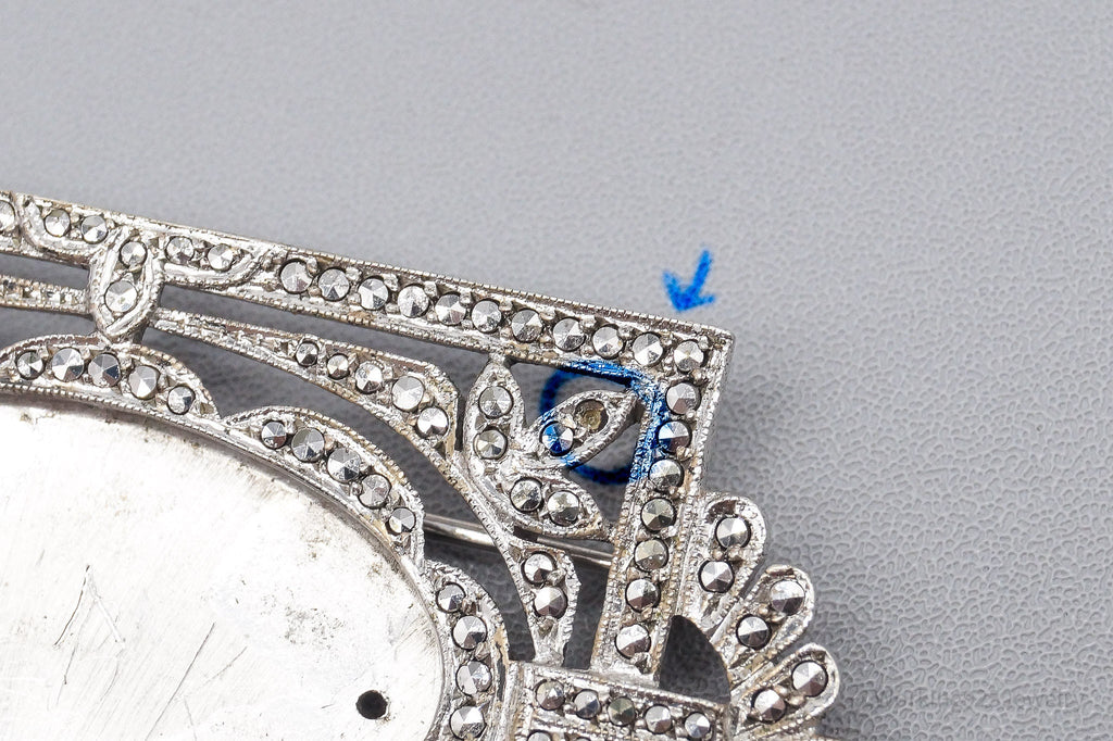 *This item is missing 1 Marcasite gemstone. Please see the last photo for details.*