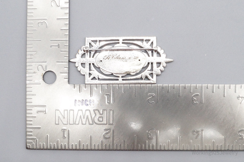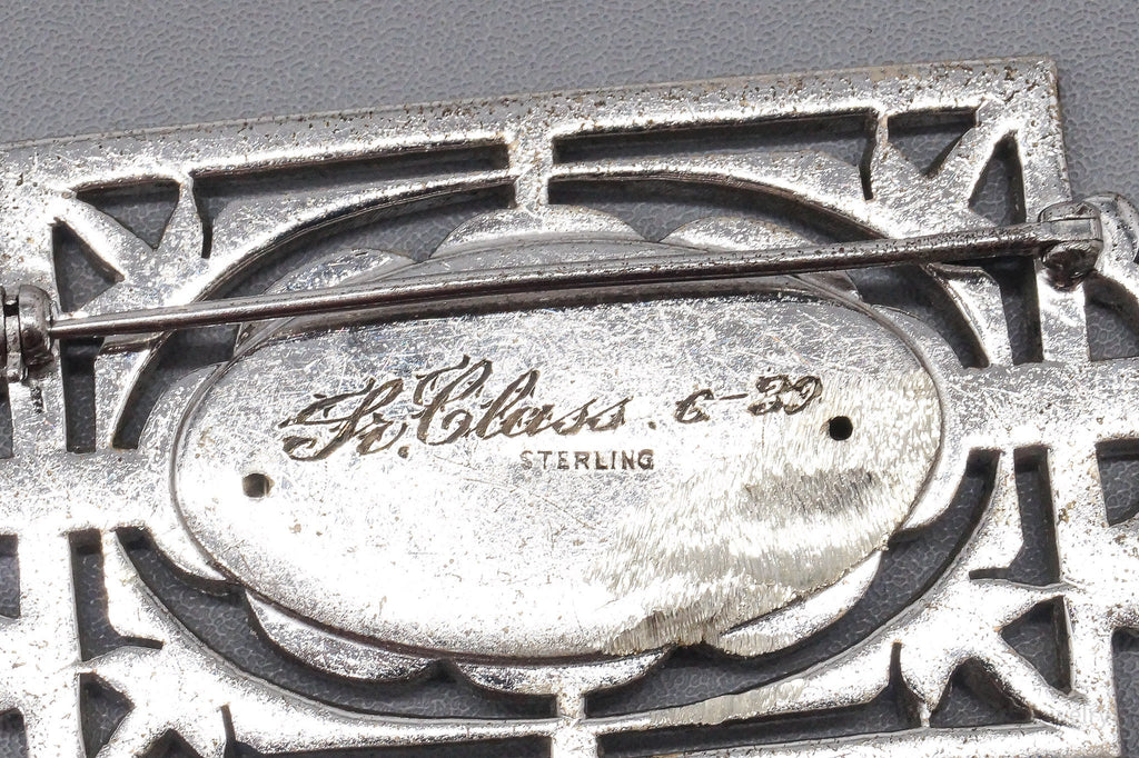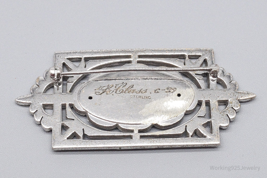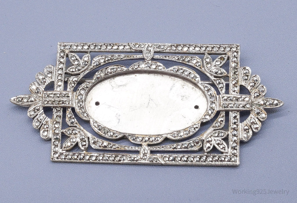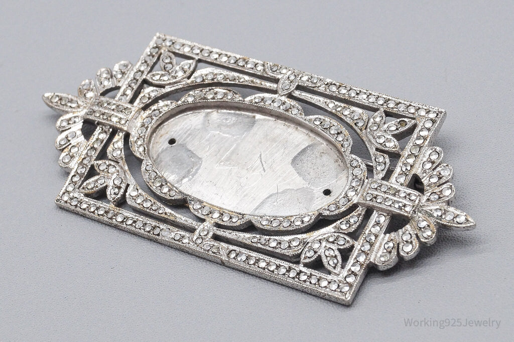 Antique 1930s Marcasite Art Deco Sterling Silver Brooch Pin