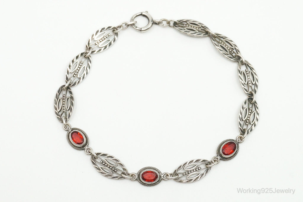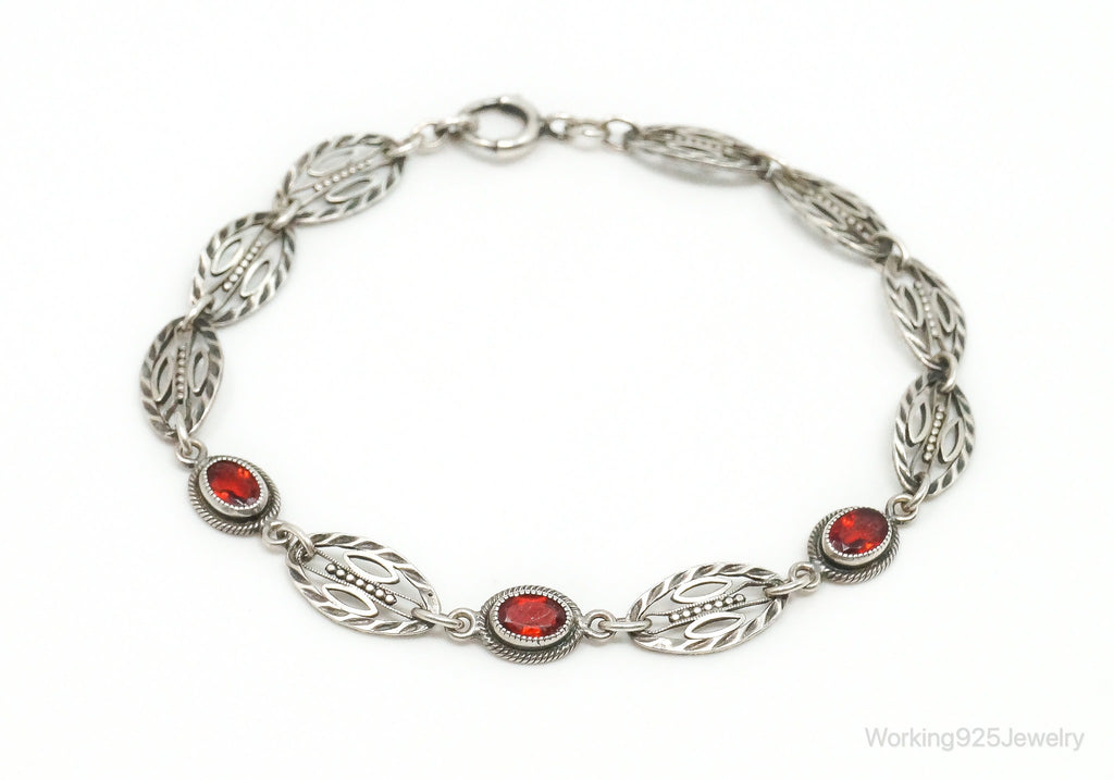 Antique Art Deco Garnet Sterling Silver Bracelet
