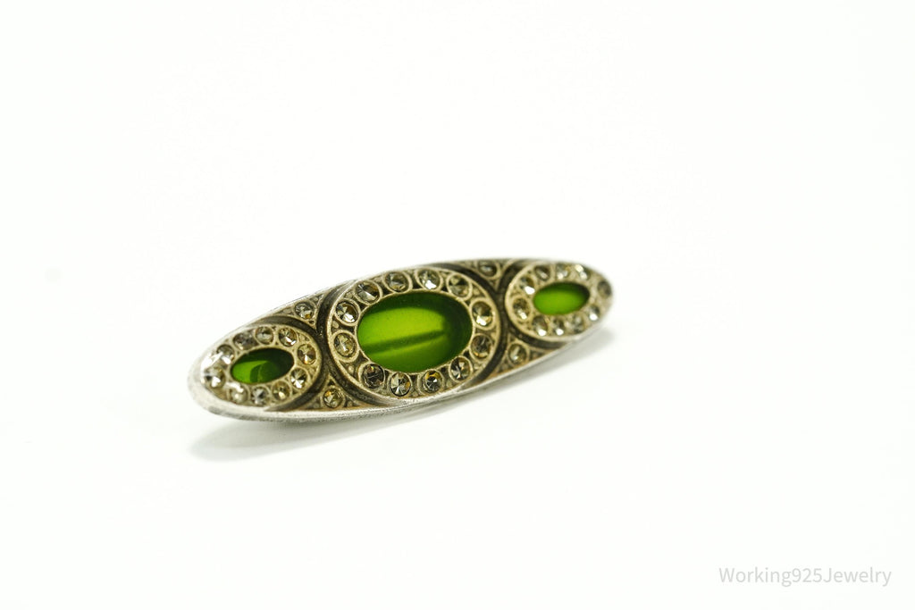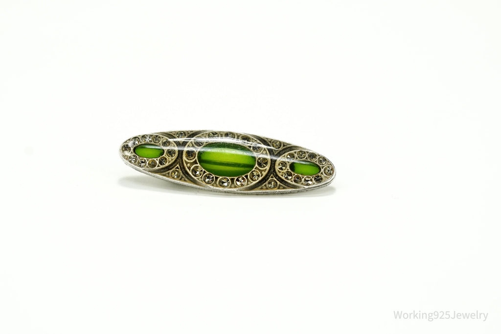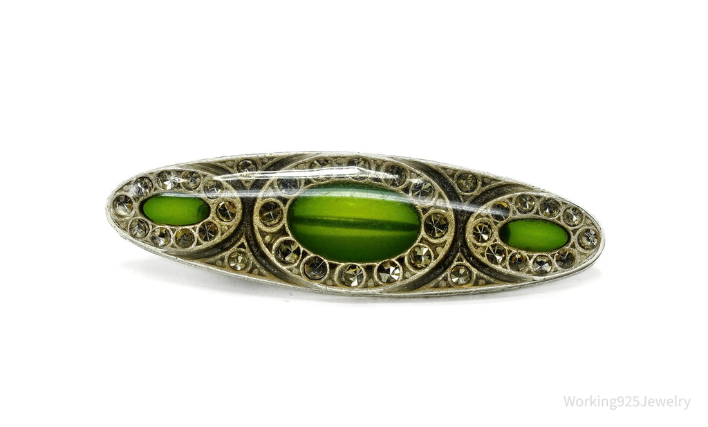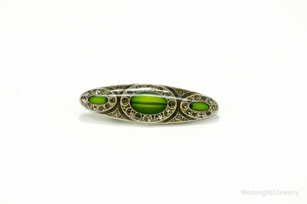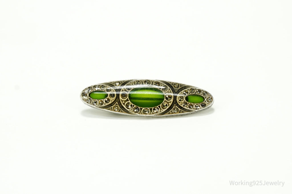 Antique Art Deco Style Rhinestone Silver Brooch Pin 1 1/8"