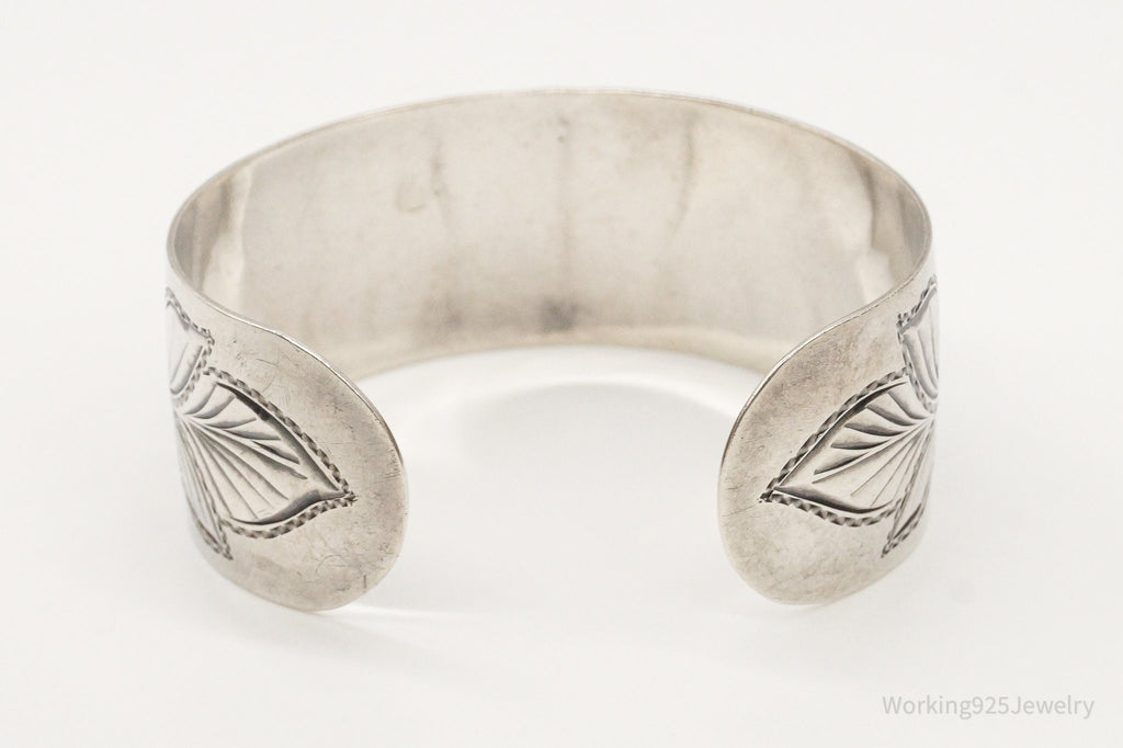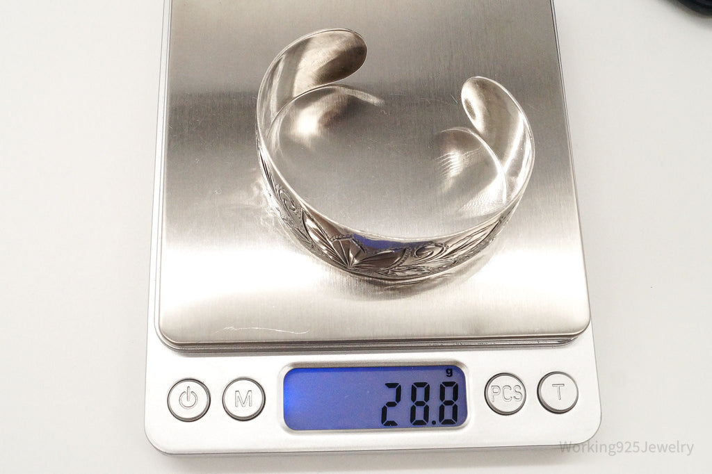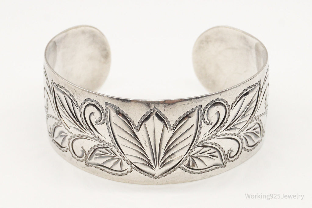 Antique Art Nouveau Motif Floral Sterling Silver Cuff Bracelet
