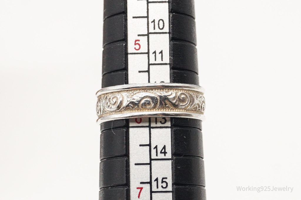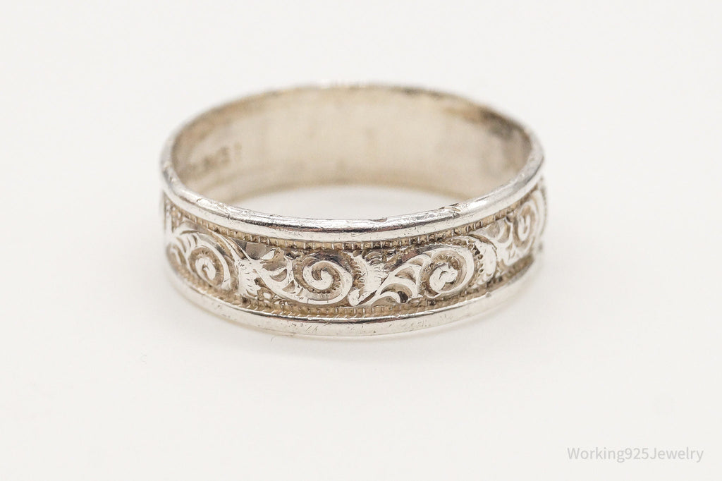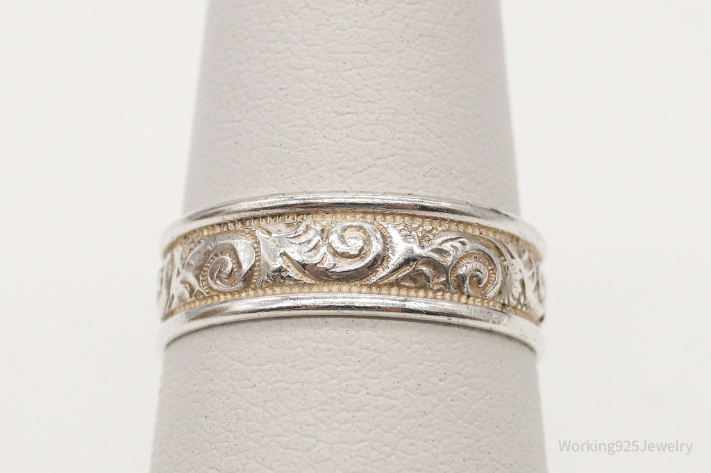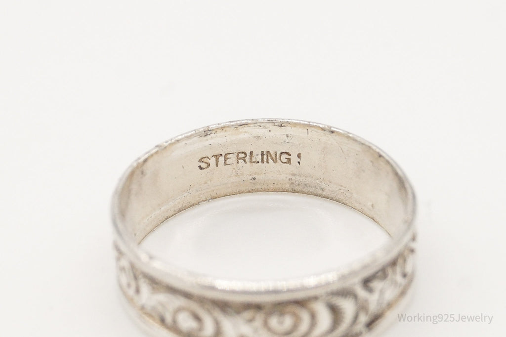 Antique Art Nouveau Sterling Silver Band Ring - Size 5.75
