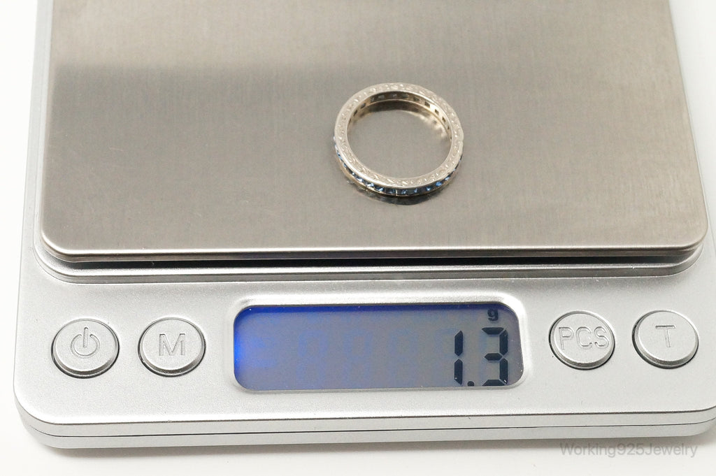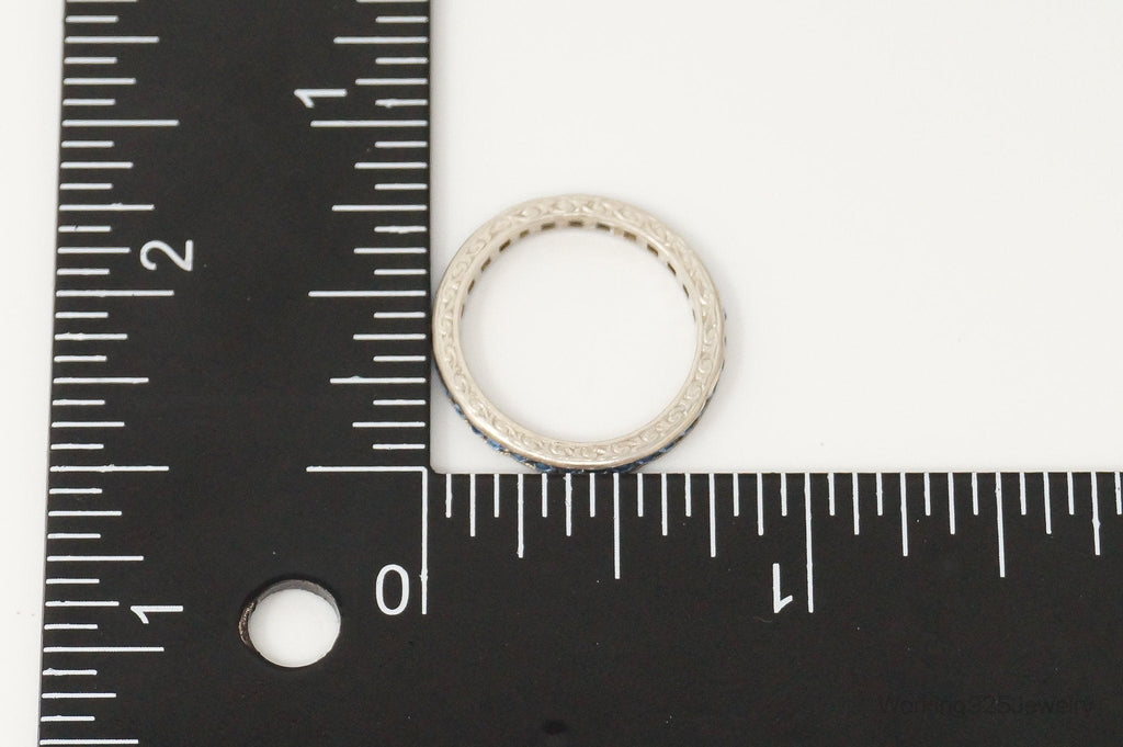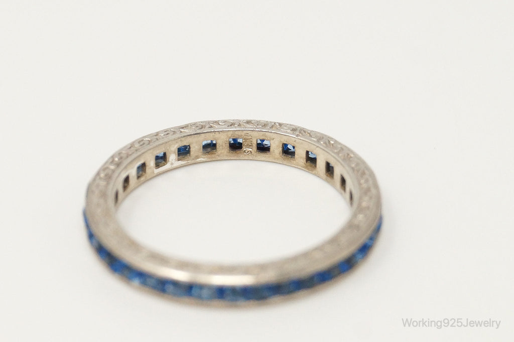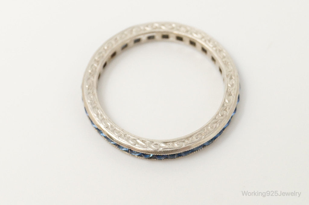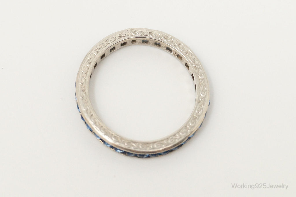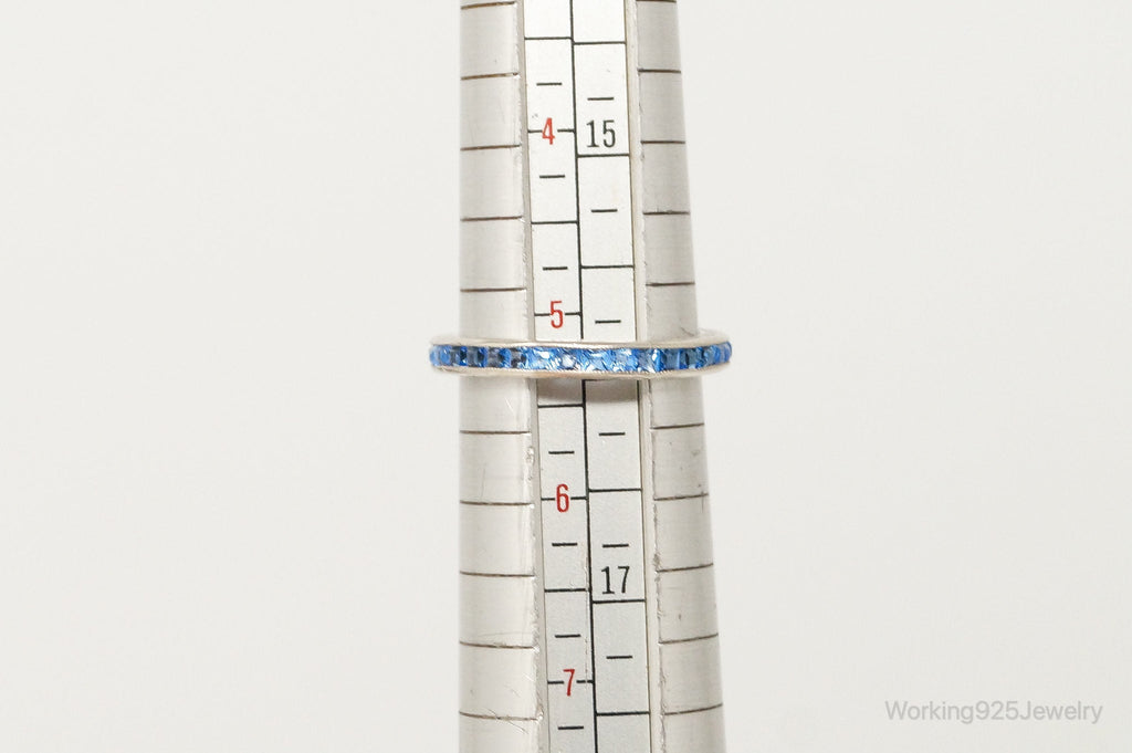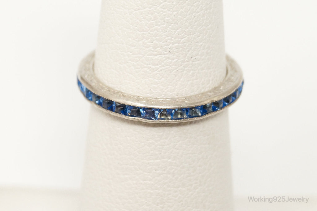 Antique Blue Glass Rhinestone Sterling Silver Ring - Size 5.25