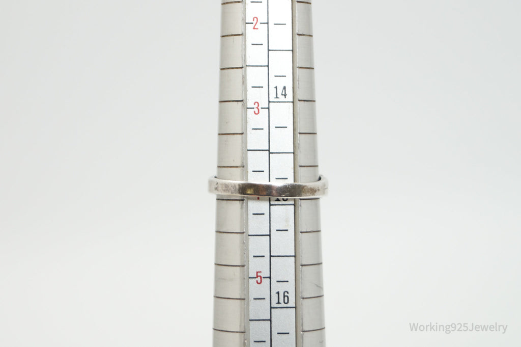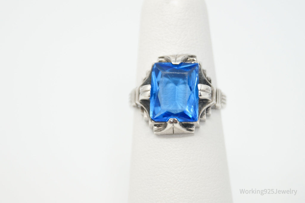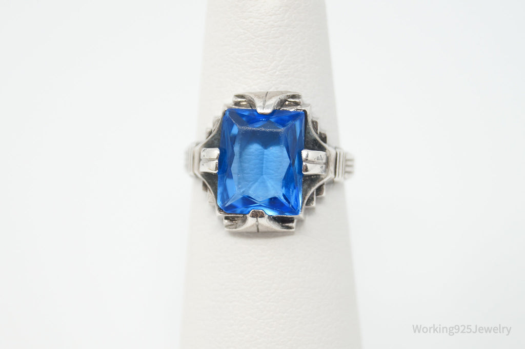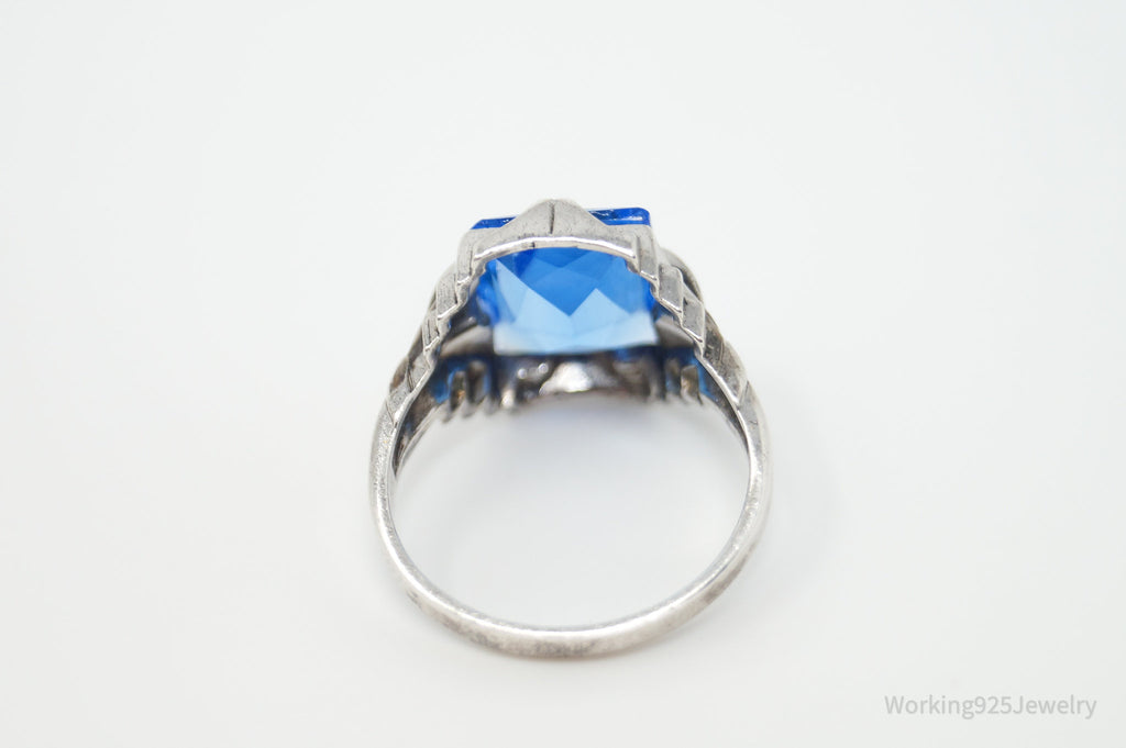 Antique Blue Glass Sterling Silver Statement Ring - Sz 4