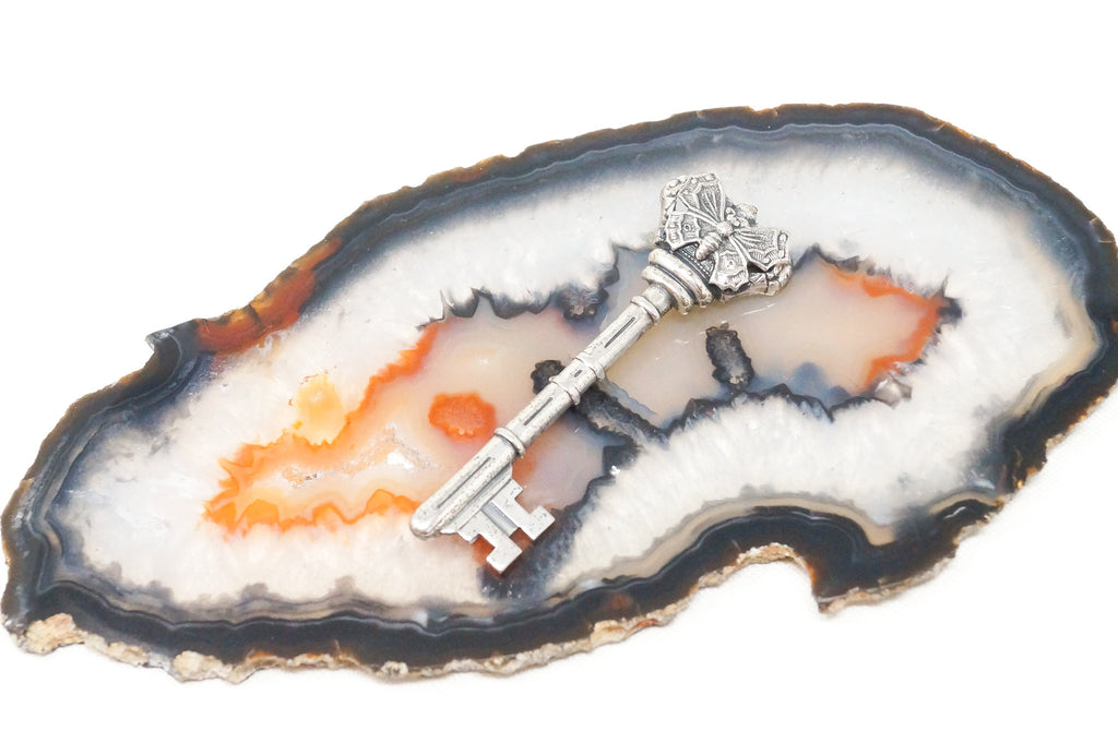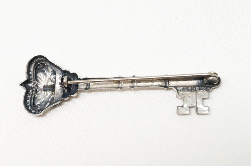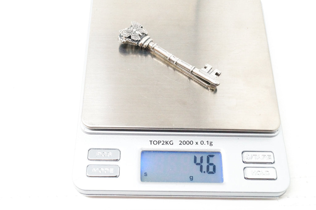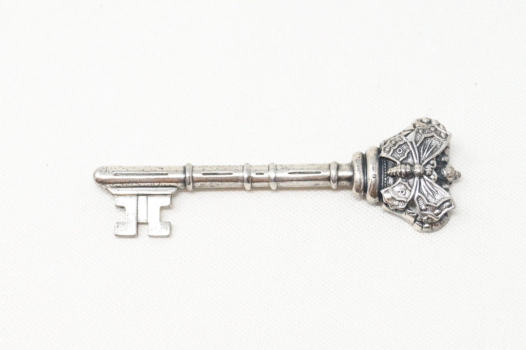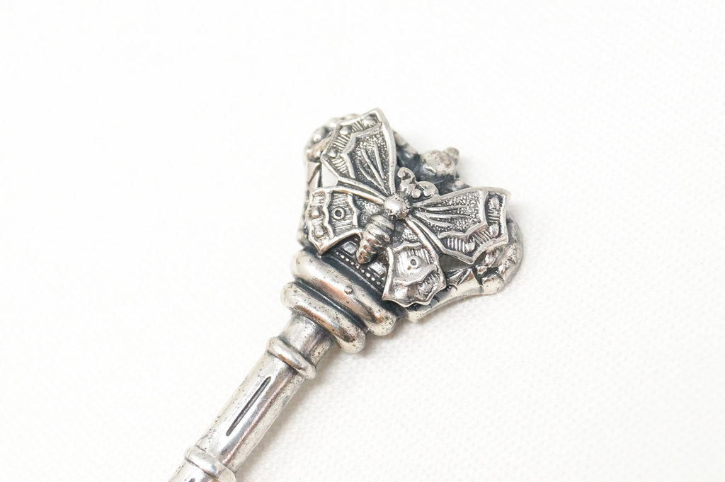 Antique Butterfly Skeleton Key Sterling Silver Brooch Pin