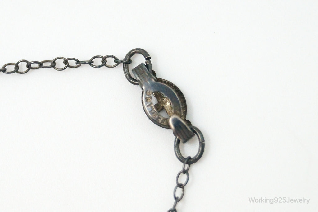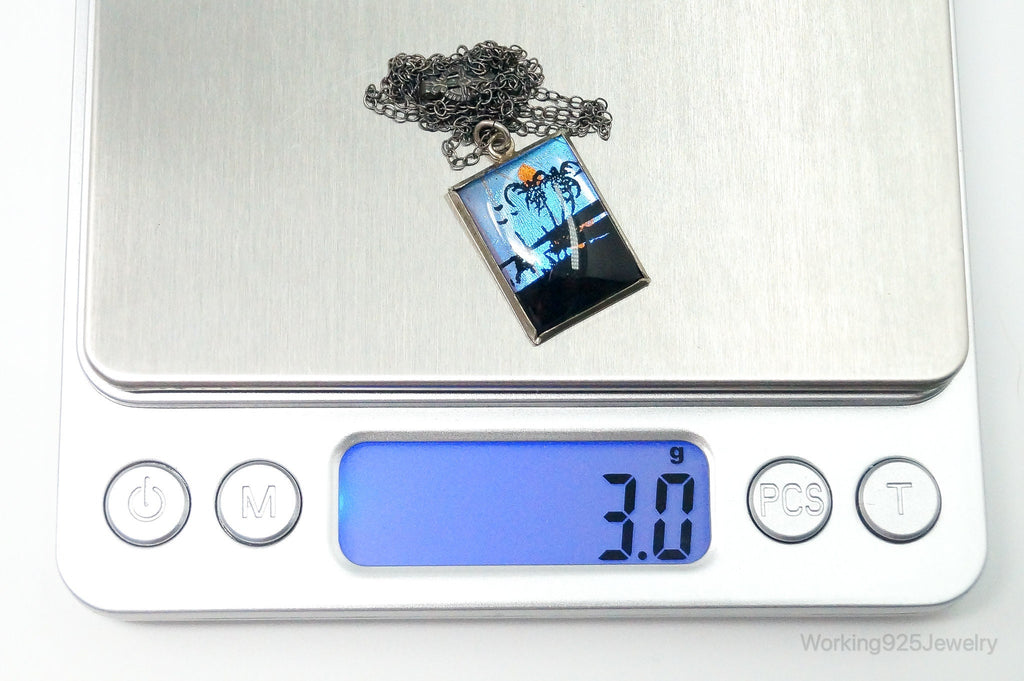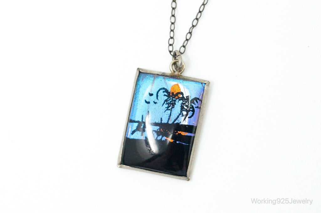 Antique Butterfly Wing Beach Scene Sterling Silver Necklace
