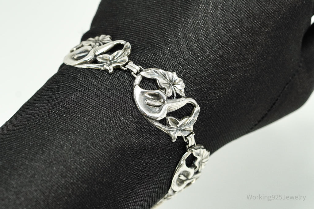 Antique Calla Lilly Floral Sterling Silver Bracelet 7 7/8"