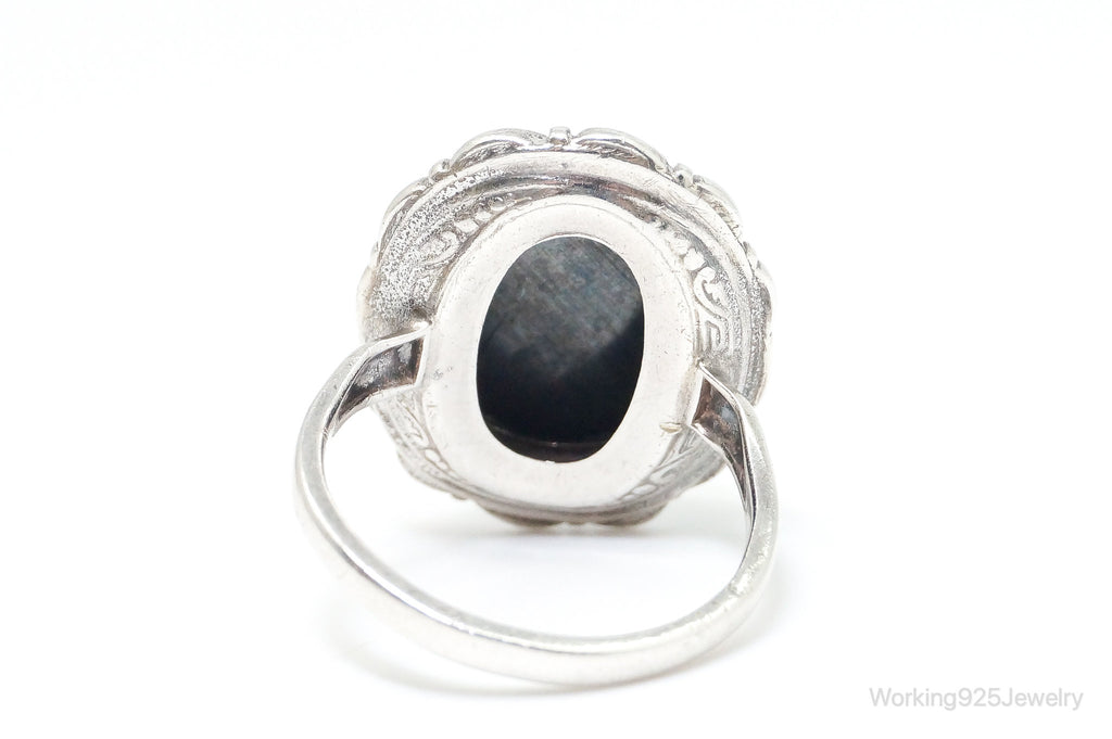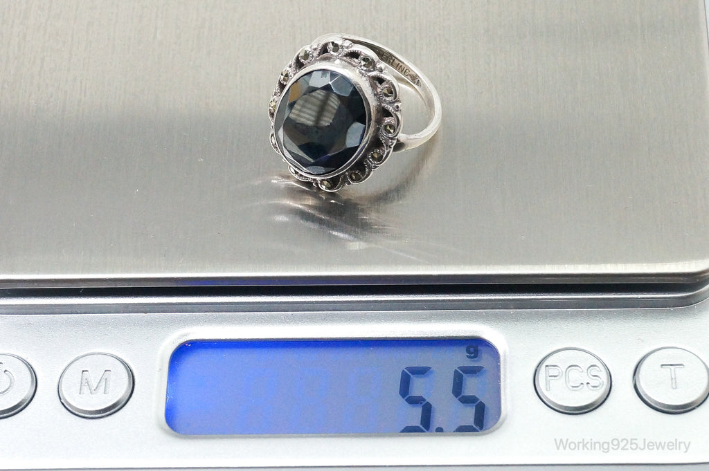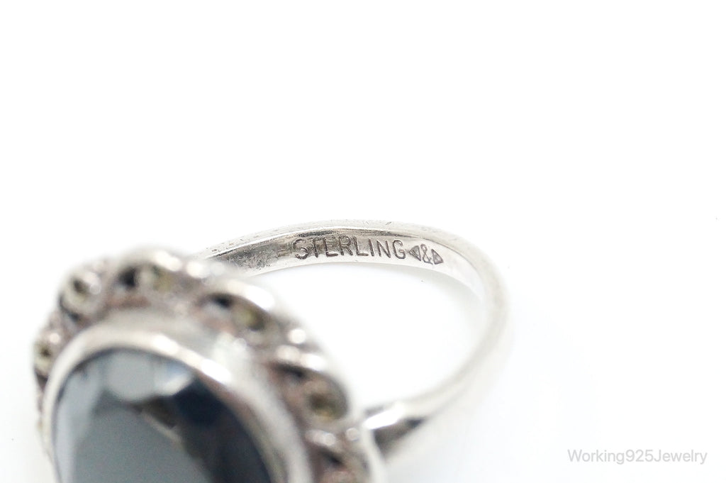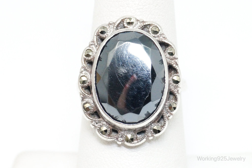 Antique Clark & Coombs Hematite Marcasite Sterling Silver Ring SZ 7.25
