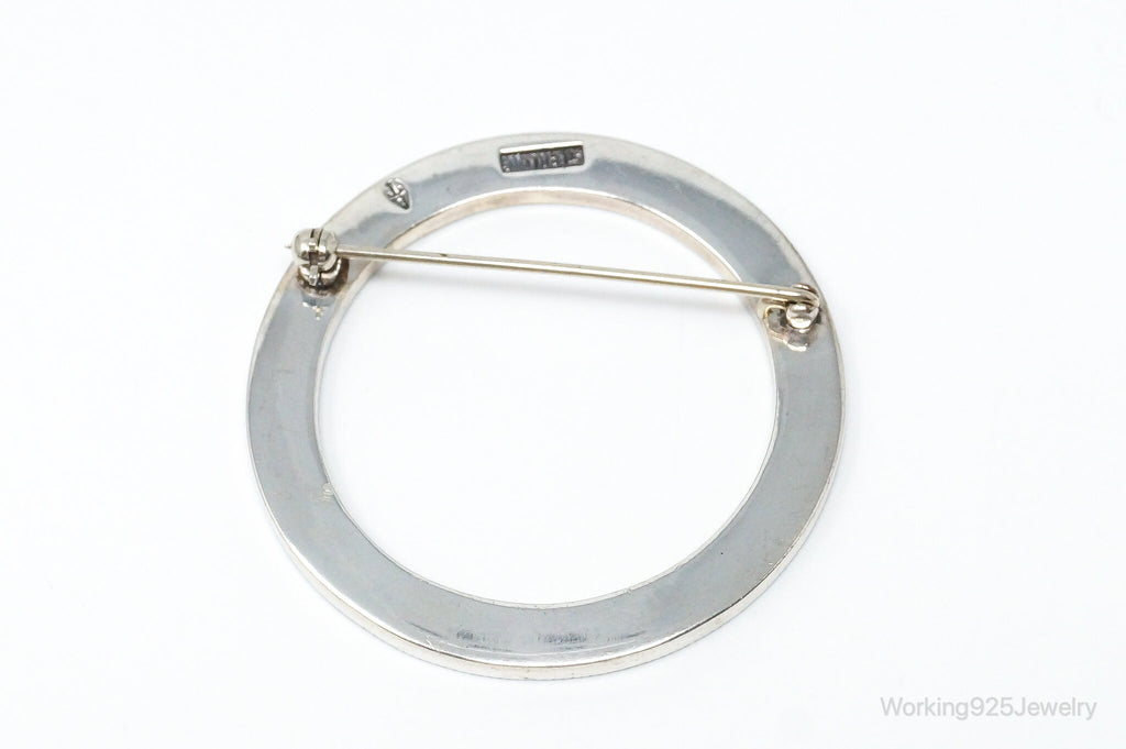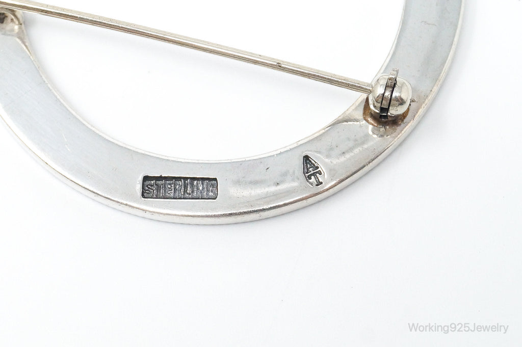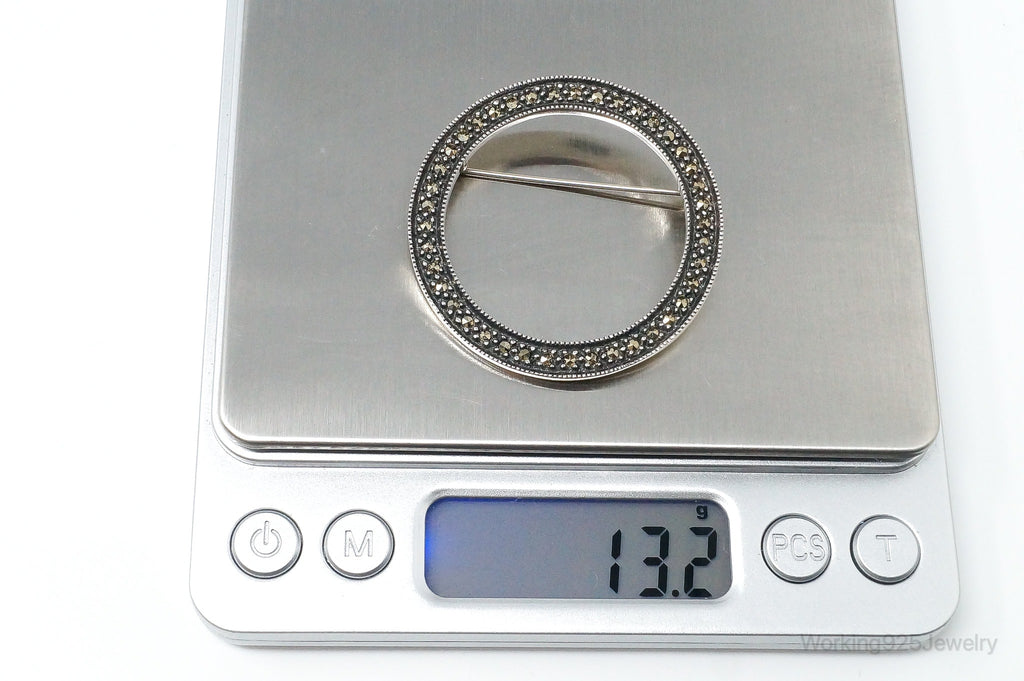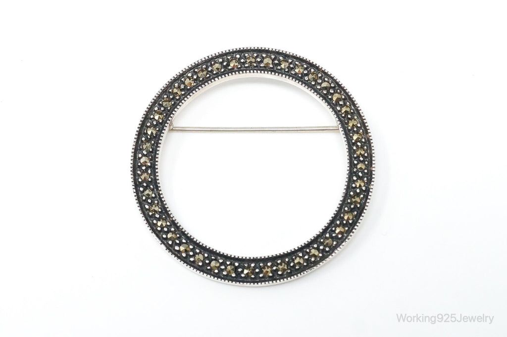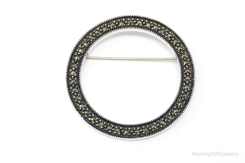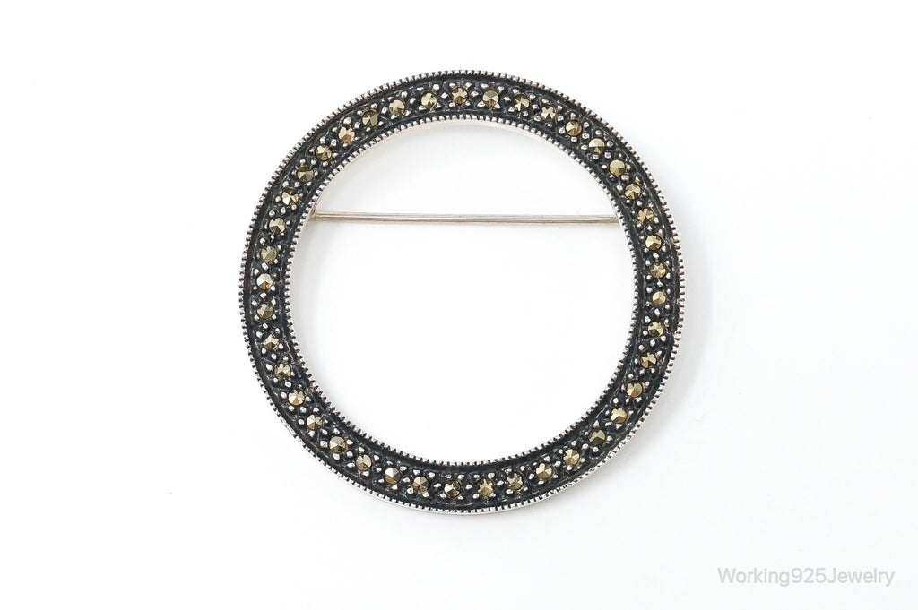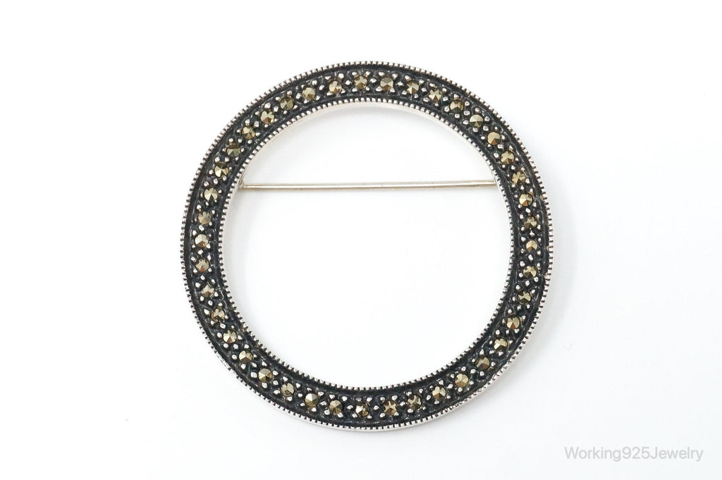 Antique Designer A.T. Marcasite Sterling Silver Brooch Pin