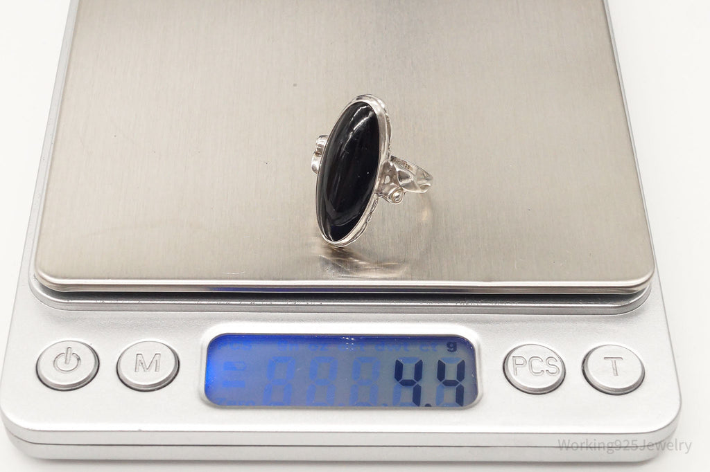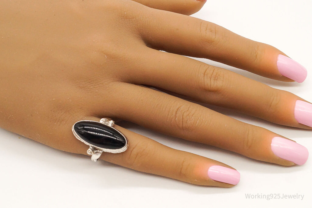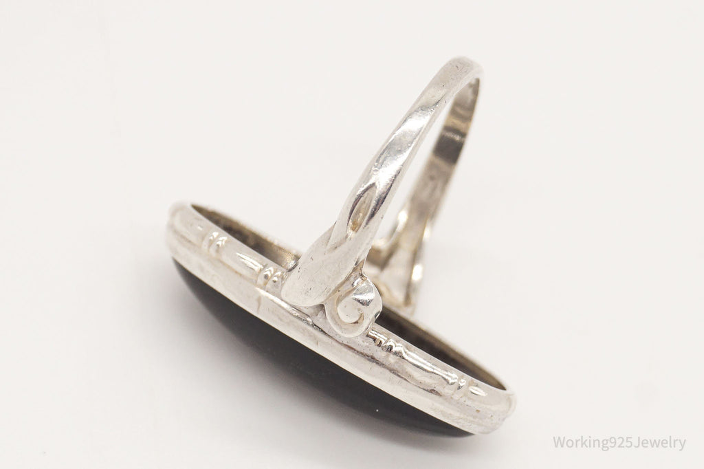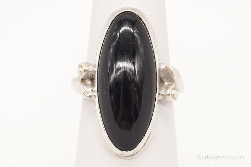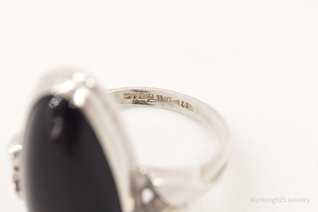 Antique Designer Clark & Coombs Black Onyx Sterling Silver Ring - Size 6