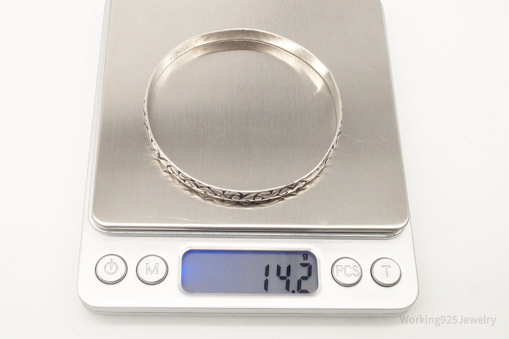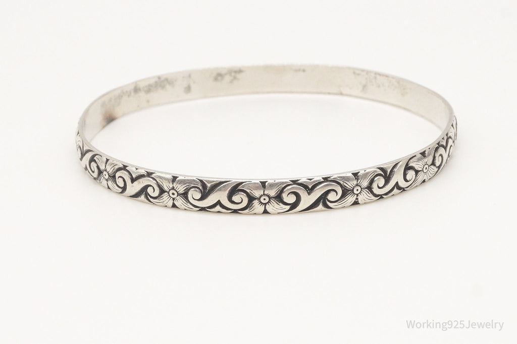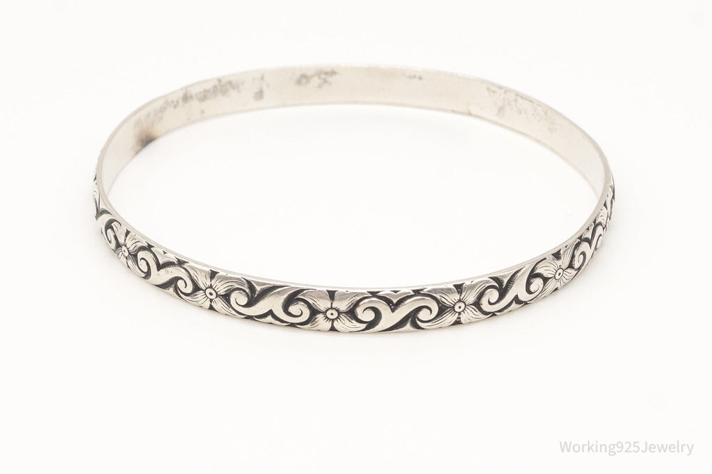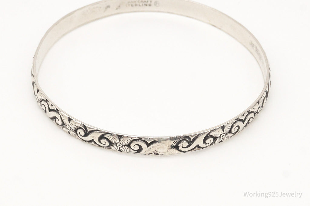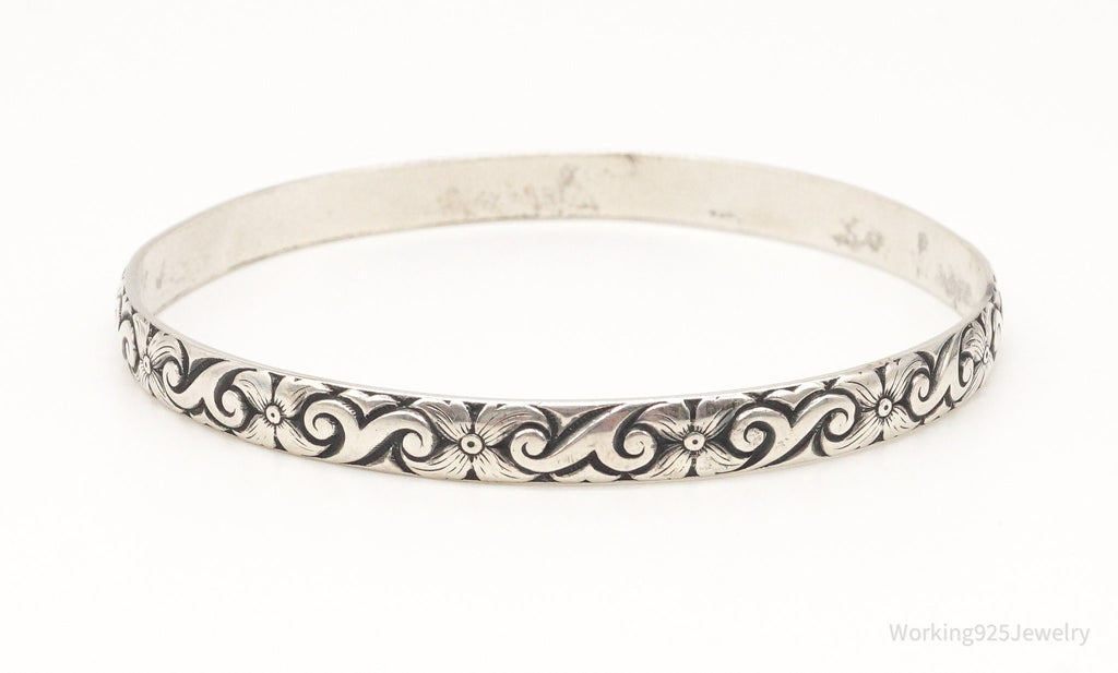 Antique Designer Danecraft Felch Co Sterling Silver Floral Bangle Bracelet