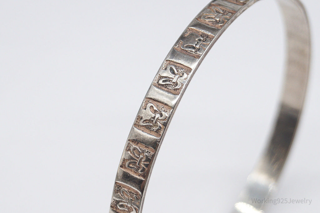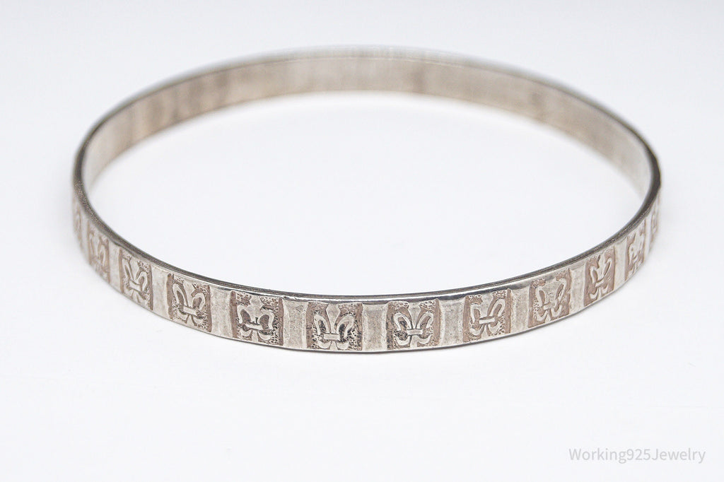 Antique Designer Danecraft Fleur-De-Lis Pattern Sterling Silver Bracelet 8"
