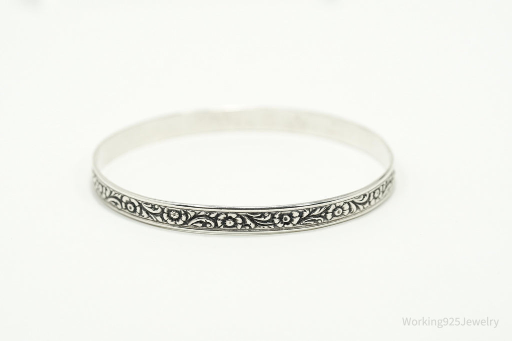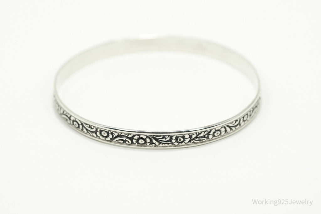 Antique Designer Danecraft Floral Pattern Sterling Silver Bracelet 7.75"