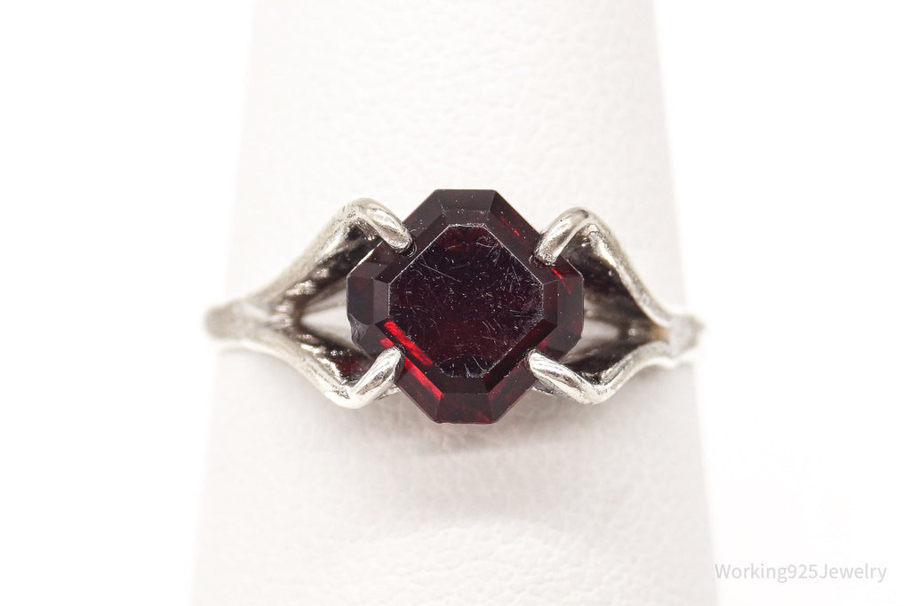 Antique Designer ESPO Red Art Glass Sterling Silver Ring - Size 6.75
