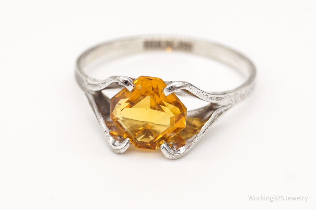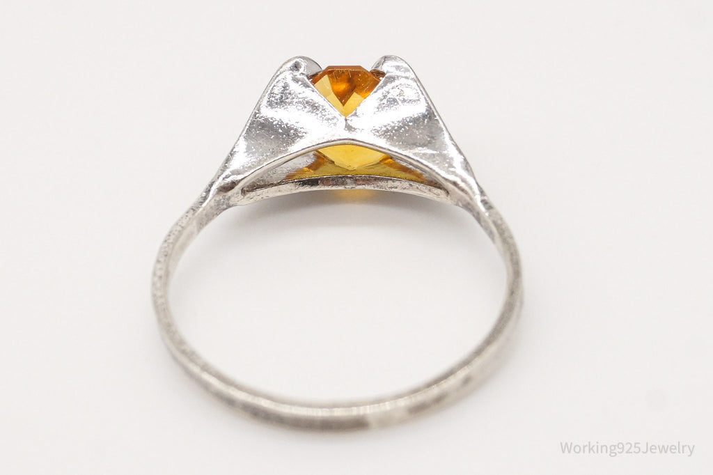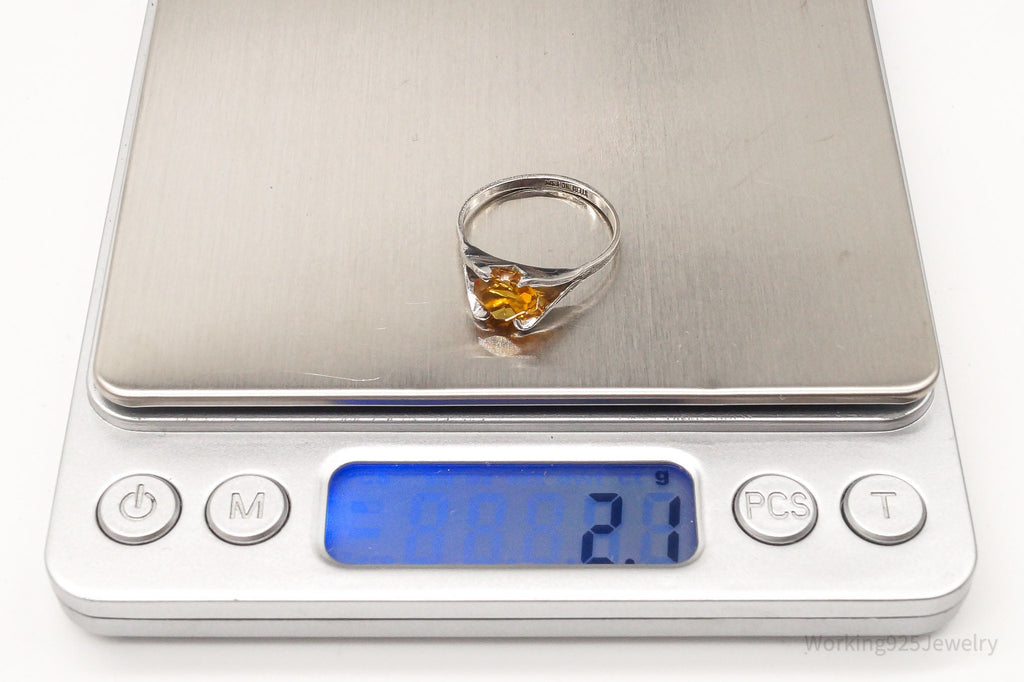 Antique Designer ESPO Yellow Stone Sterling Silver Ring - Size 8