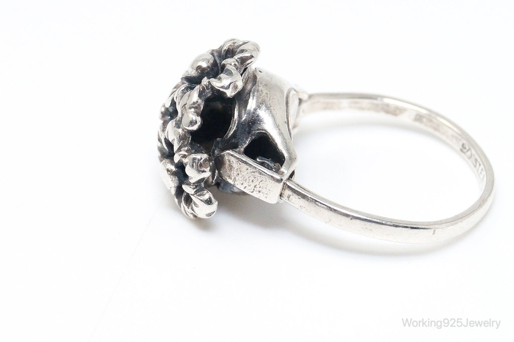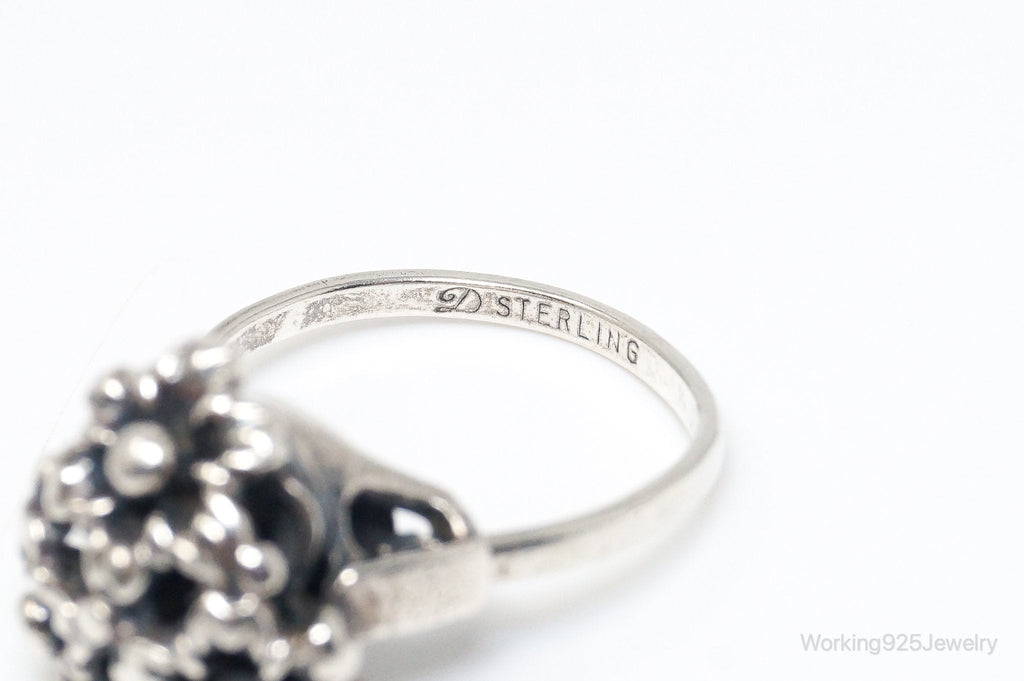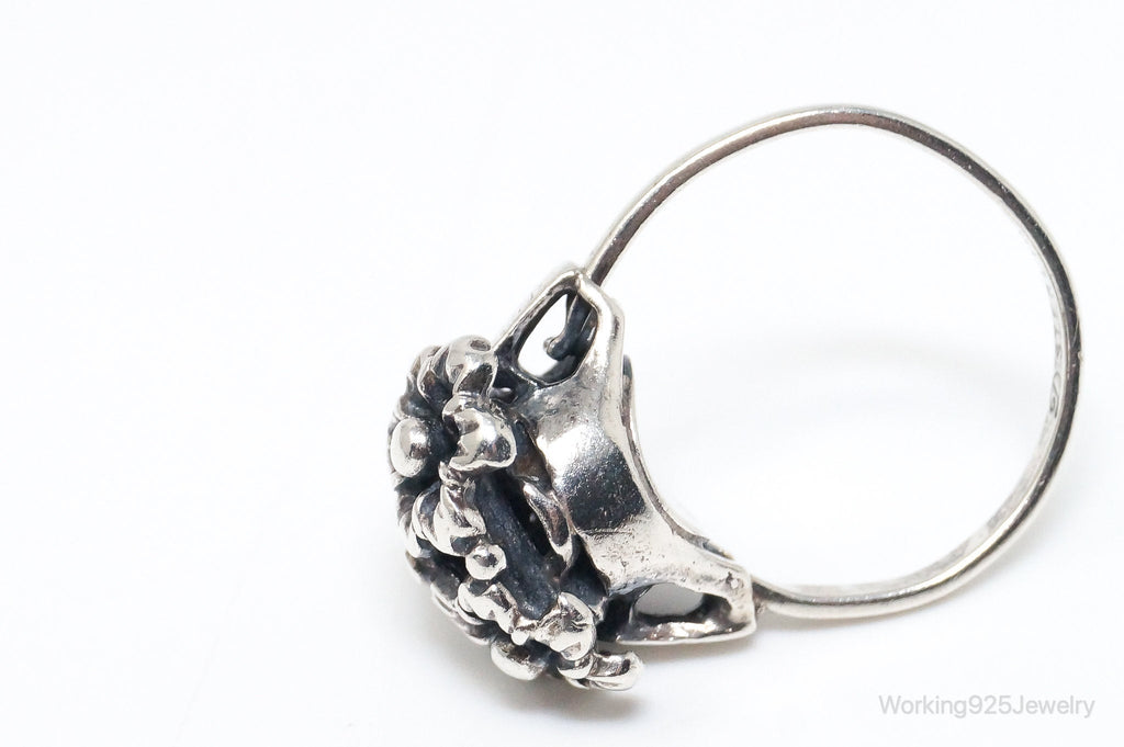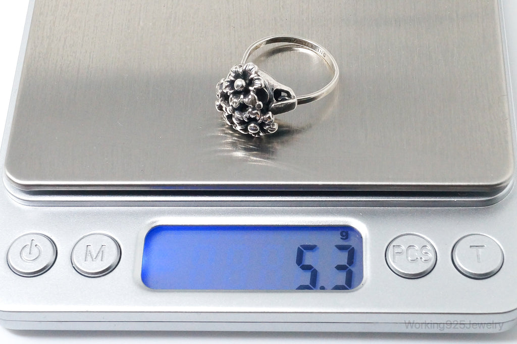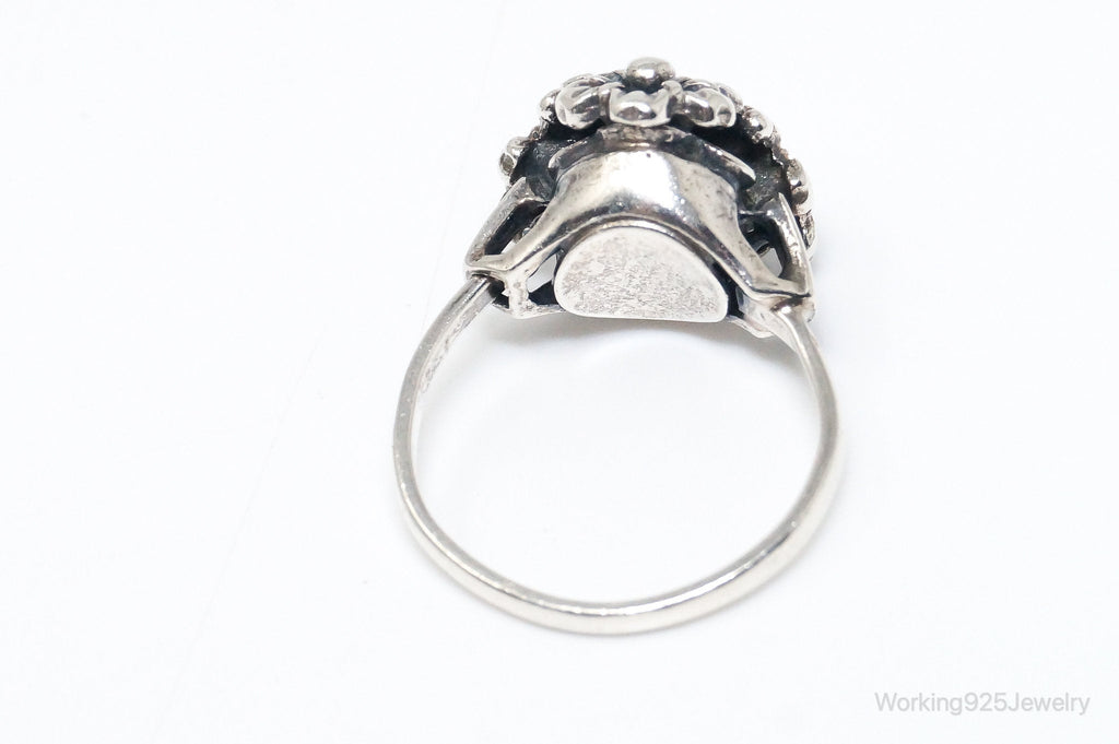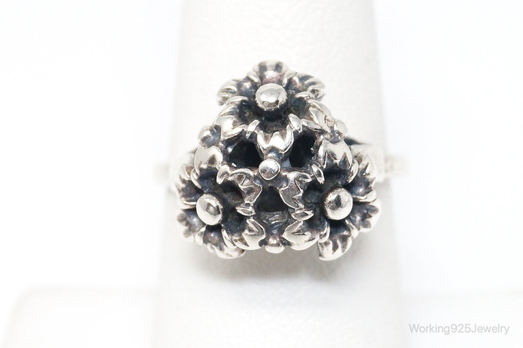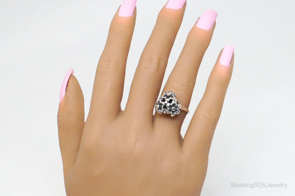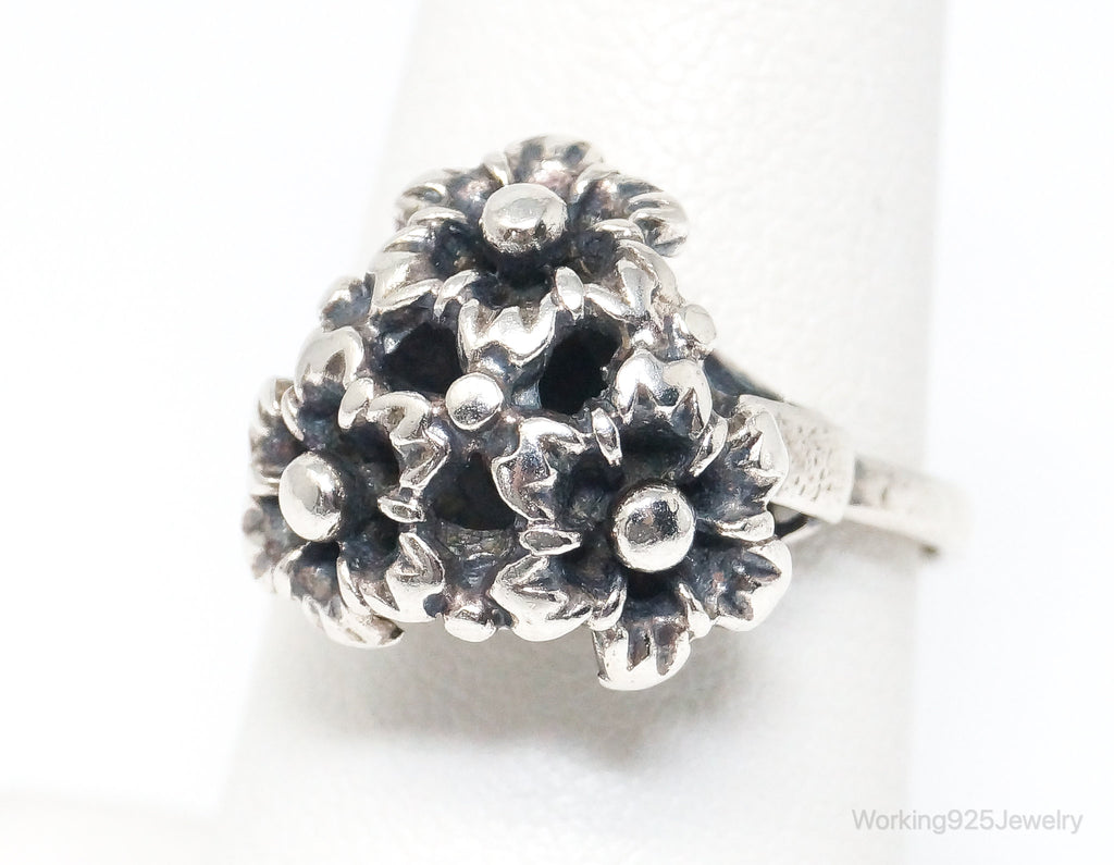 Antique Designer Floral Flowers Sterling Silver Ring - Size 7.75 Adjustable