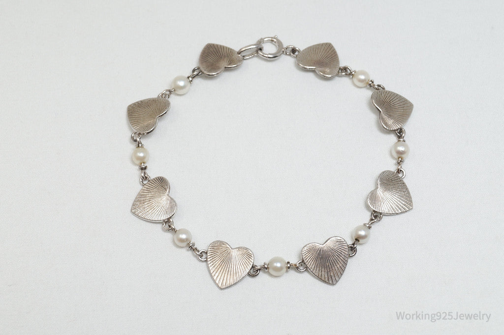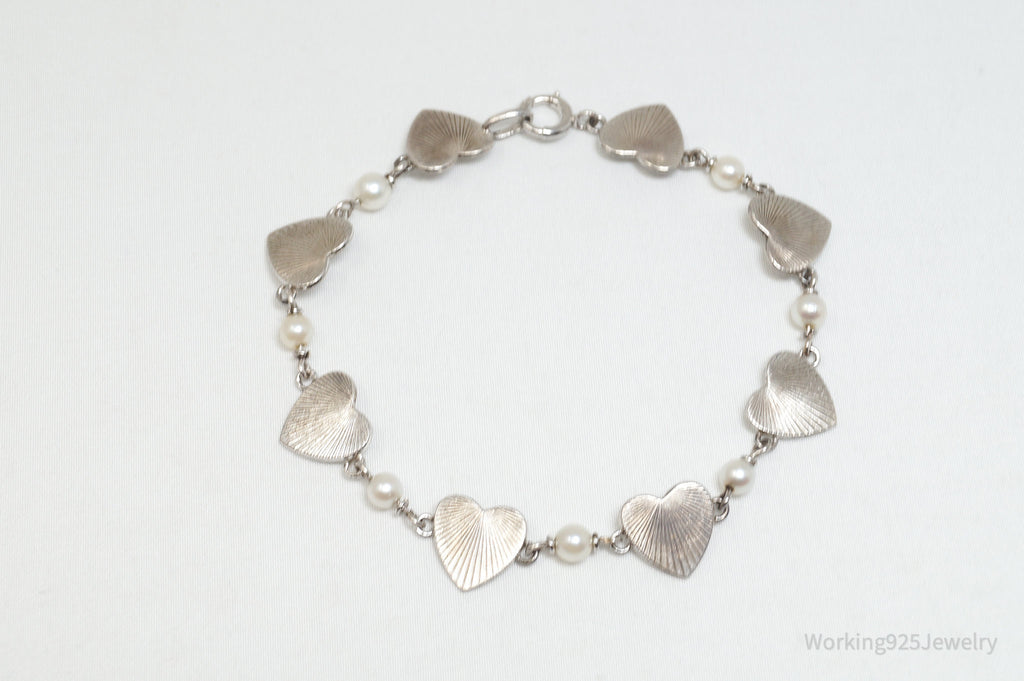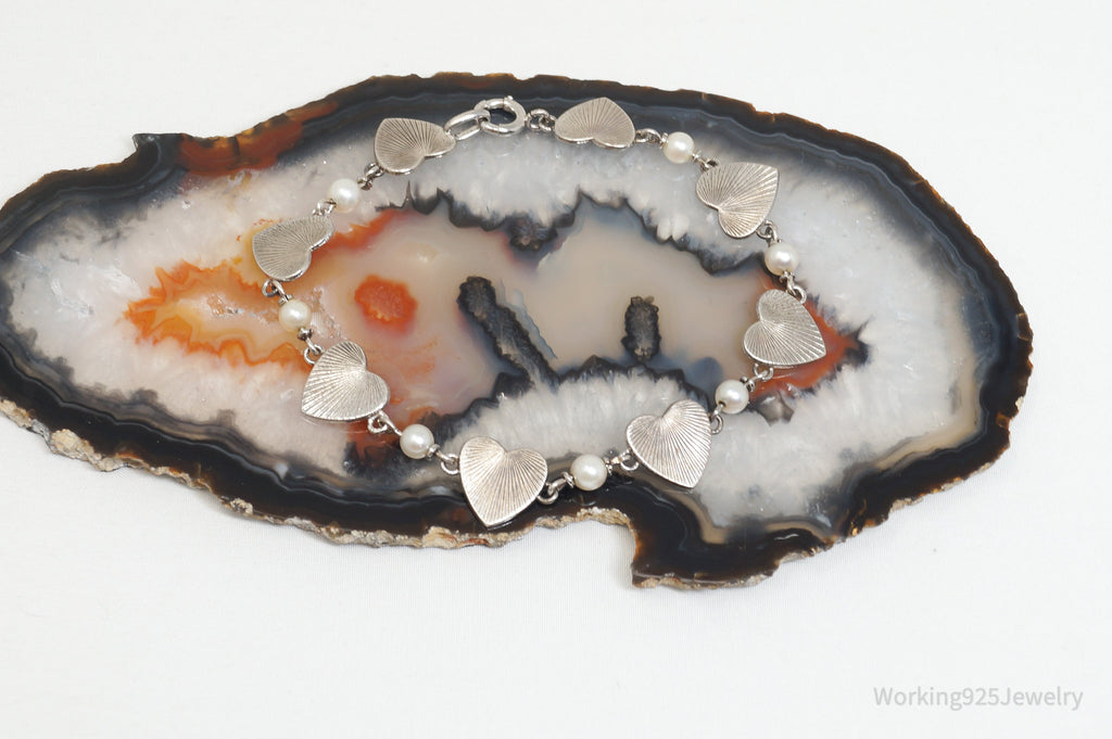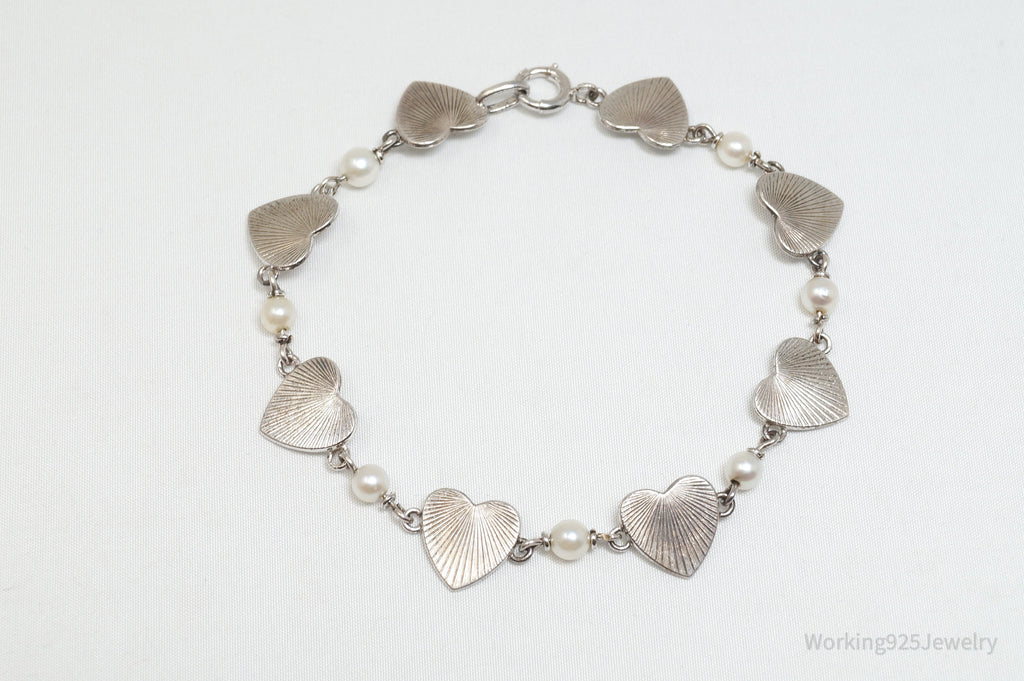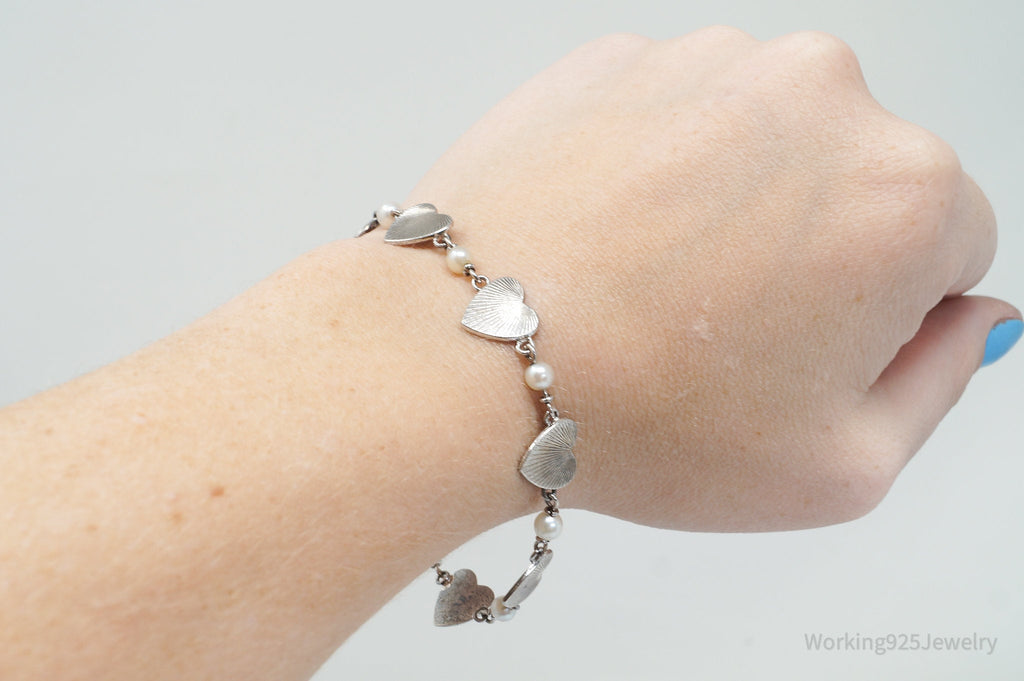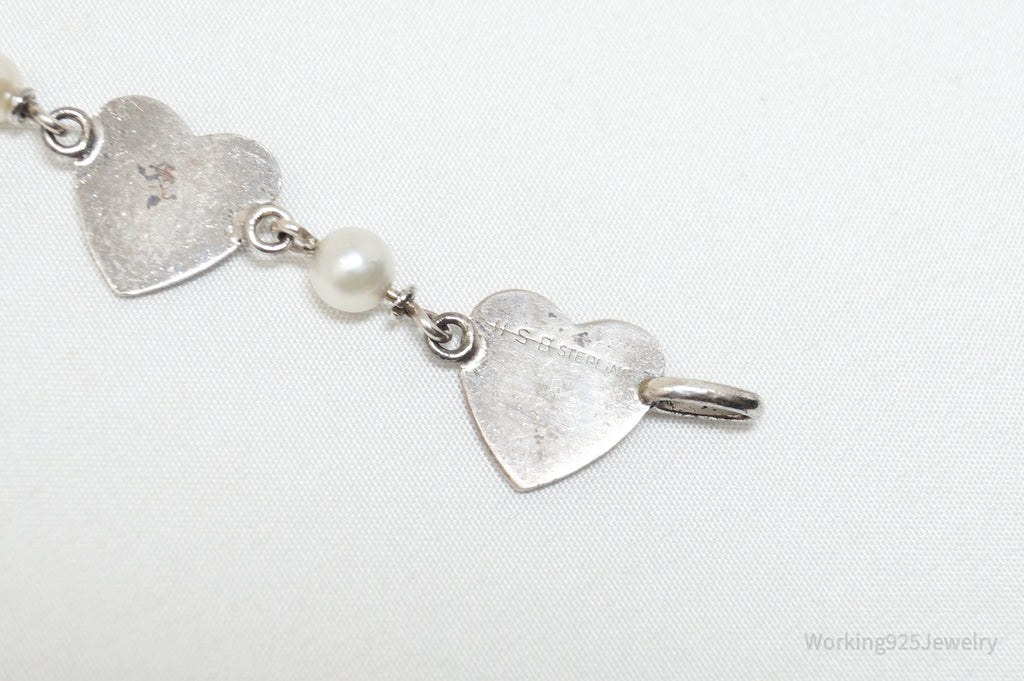 Antique Designer Harry S. Bick and Son Heart Sterling Silver Link Bracelet