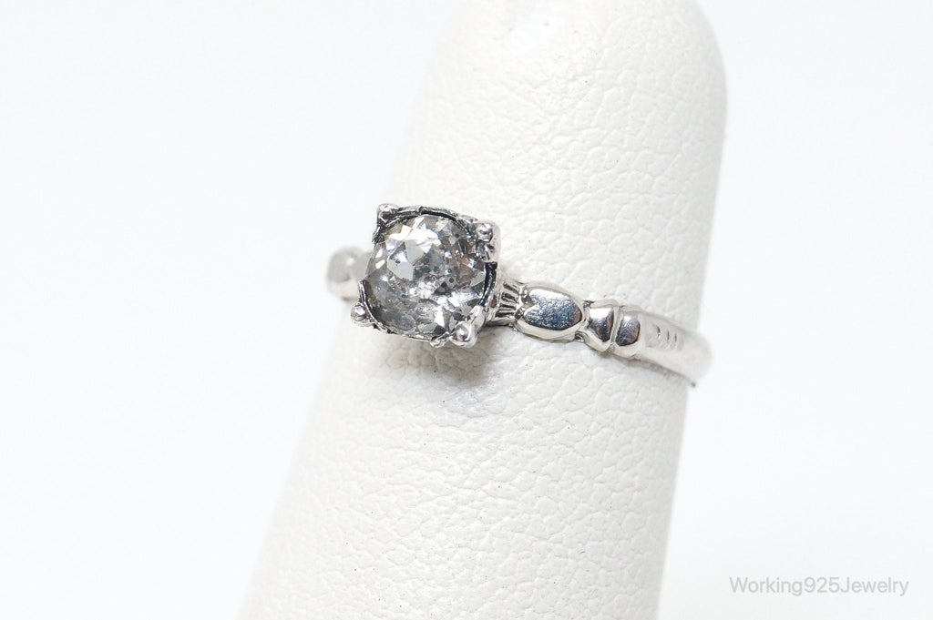 Antique Designer Kiddiegem Rhinestone Sterling Silver Ring - SZ 2.5