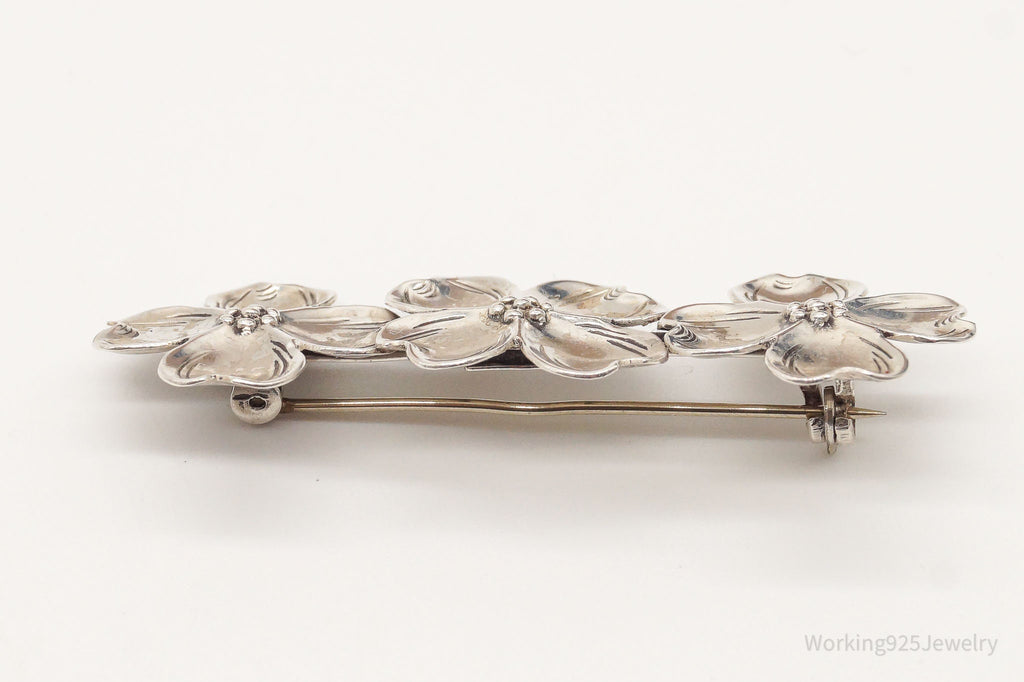 Antique Designer Lang Dogwood Sterling Silver Brooch Pin