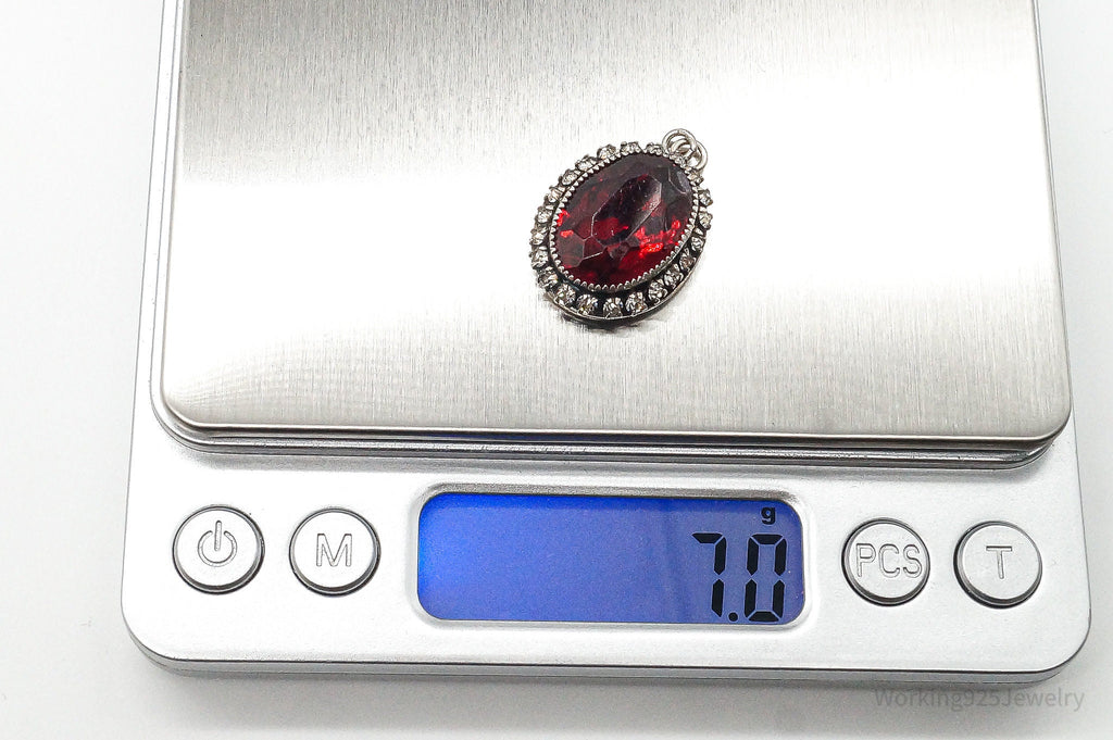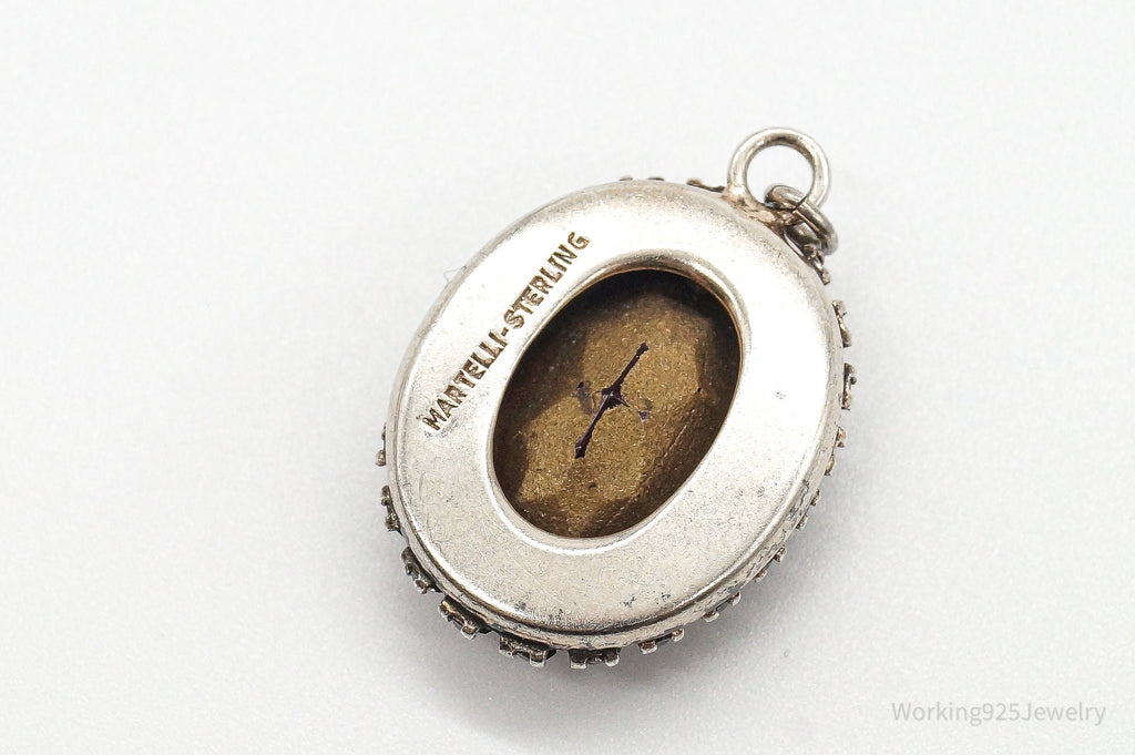 Antique Designer Martelli Glass Rhinestone Art Deco Sterling Silver Pendant