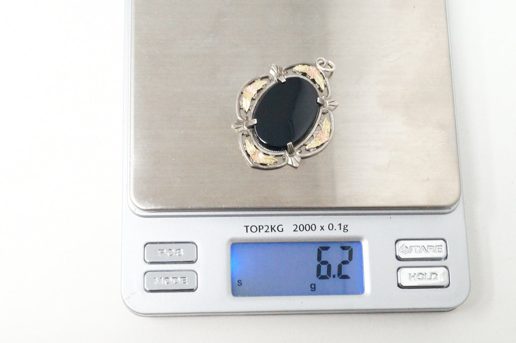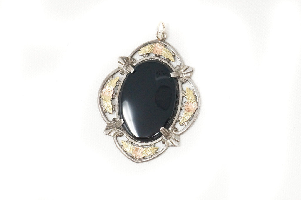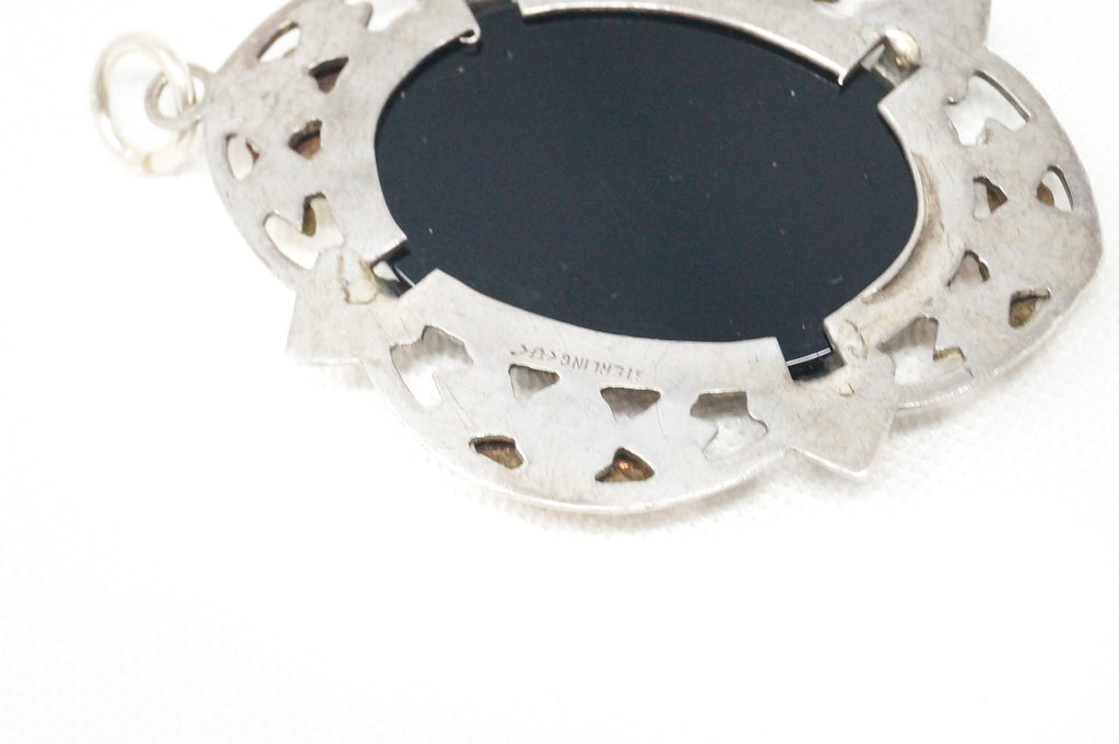 Antique Designer Uncas MFG Co Black Onyx Floral Sterling Silver Necklace Pendant