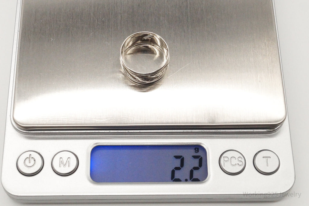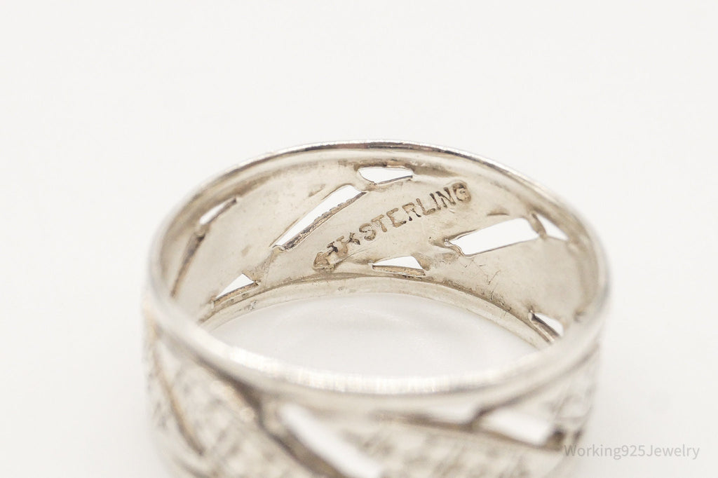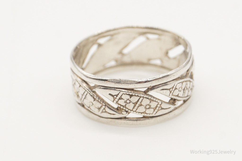 Antique Designer Uncas MFG Co Floral Sterling Silver Band Ring - Size 6.5