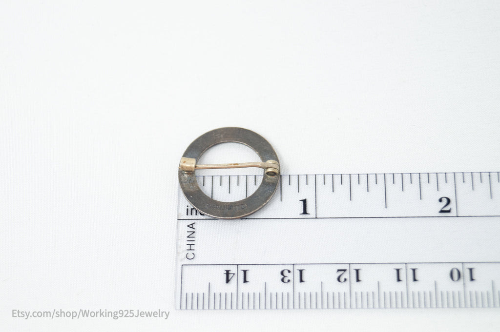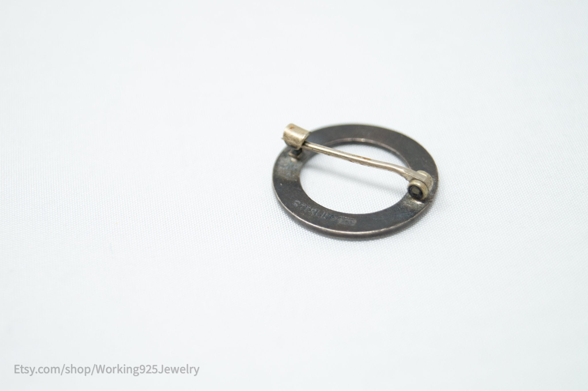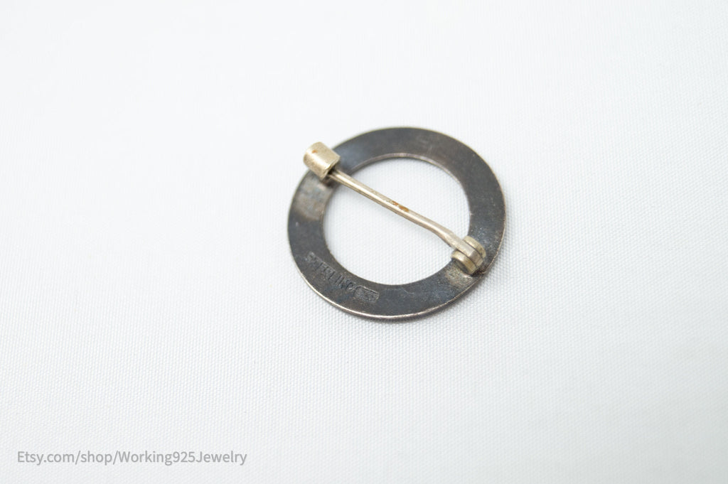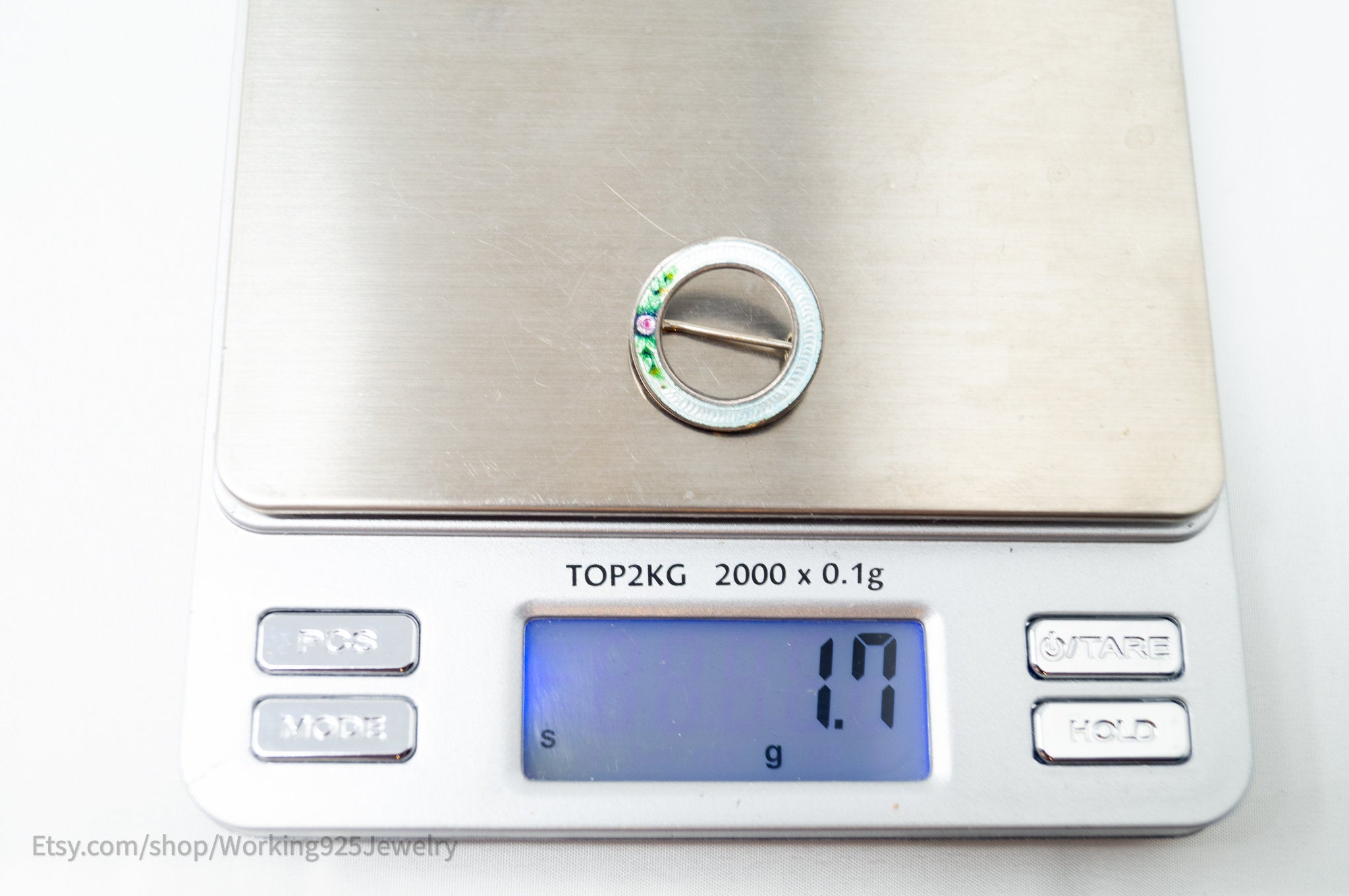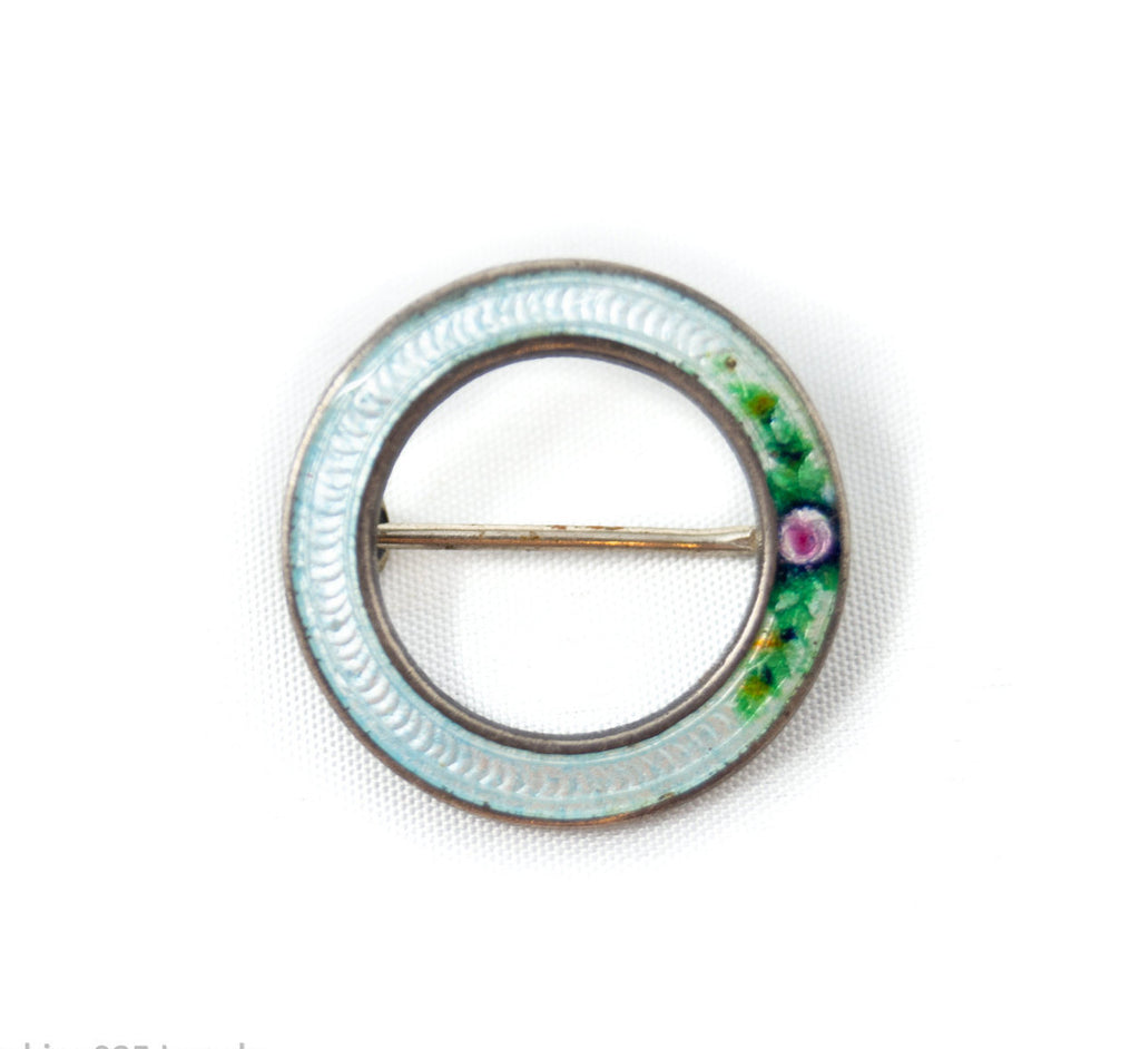 Antique Designer White Blue Guilloche Enamel Scarf Sterling Silver Brooch Pin