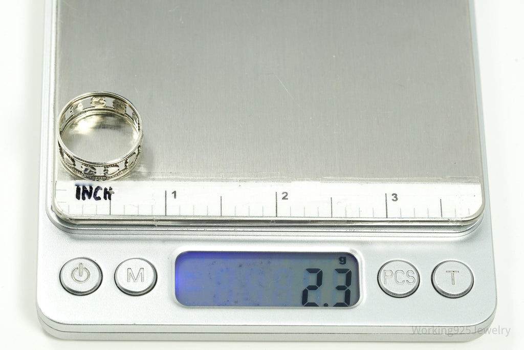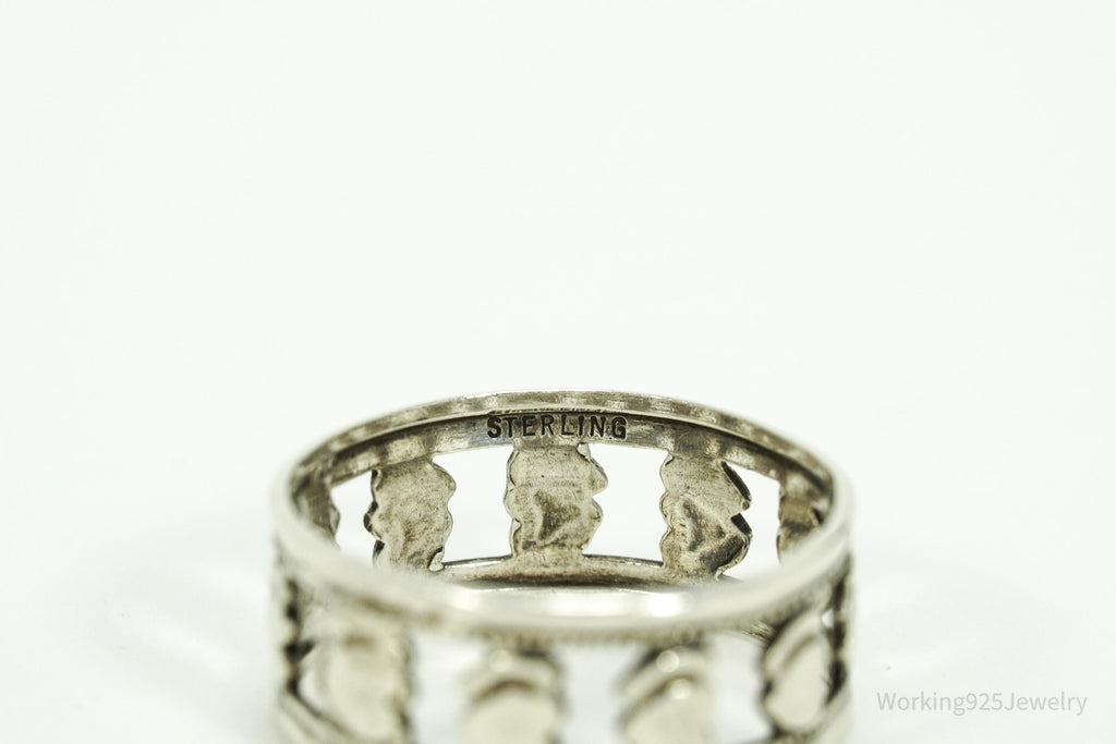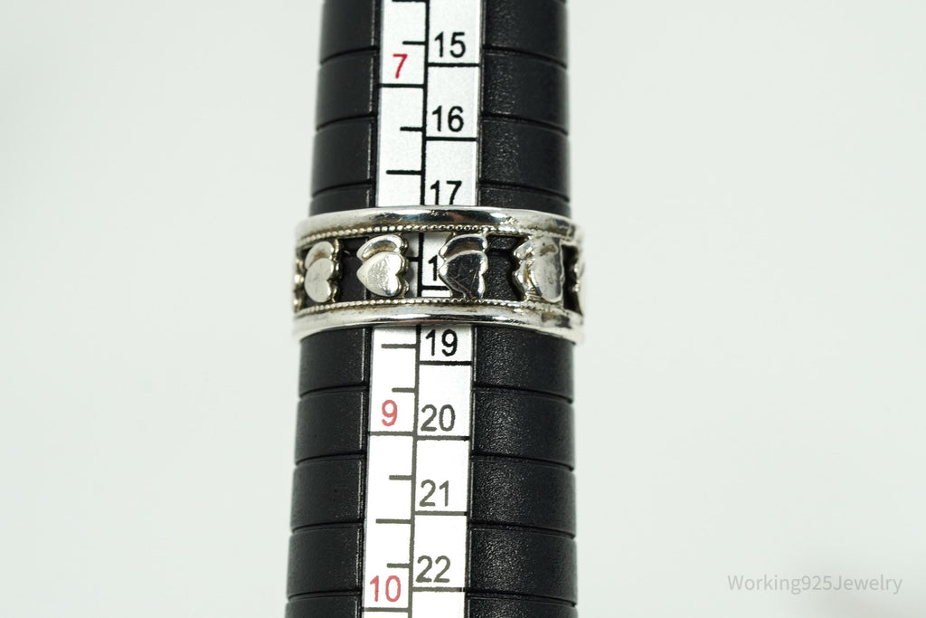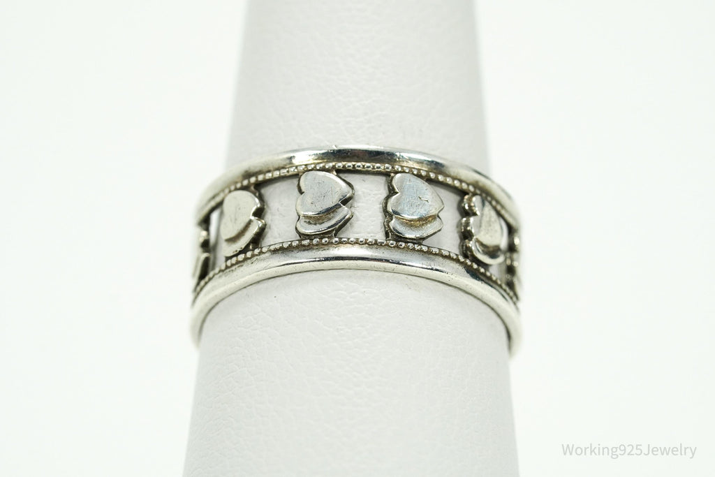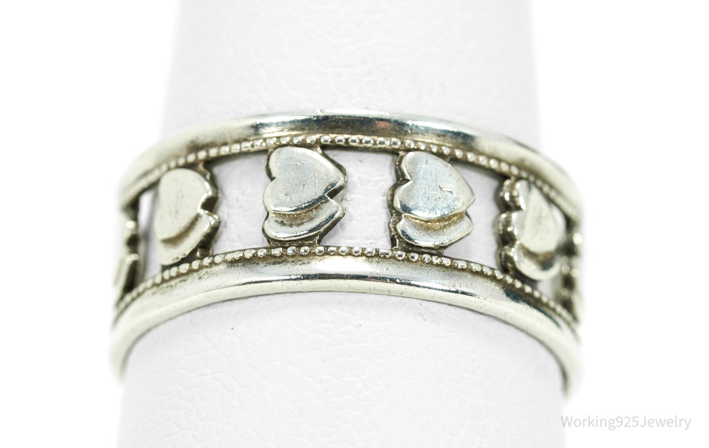 Antique Double Hearts Pattern Sterling Silver Band Ring - Size 8.25