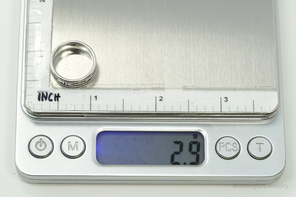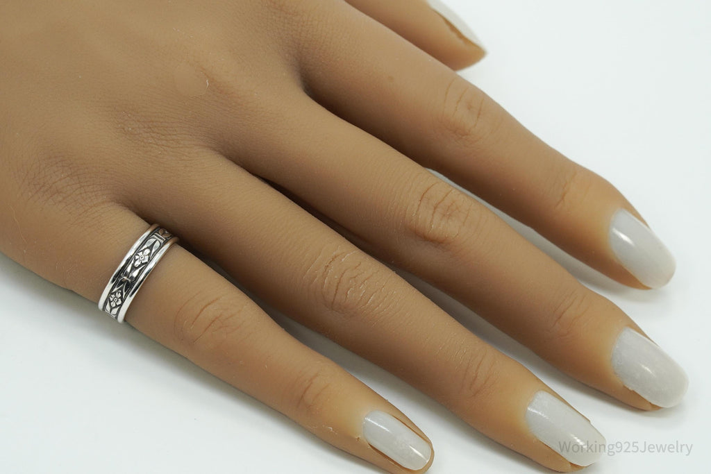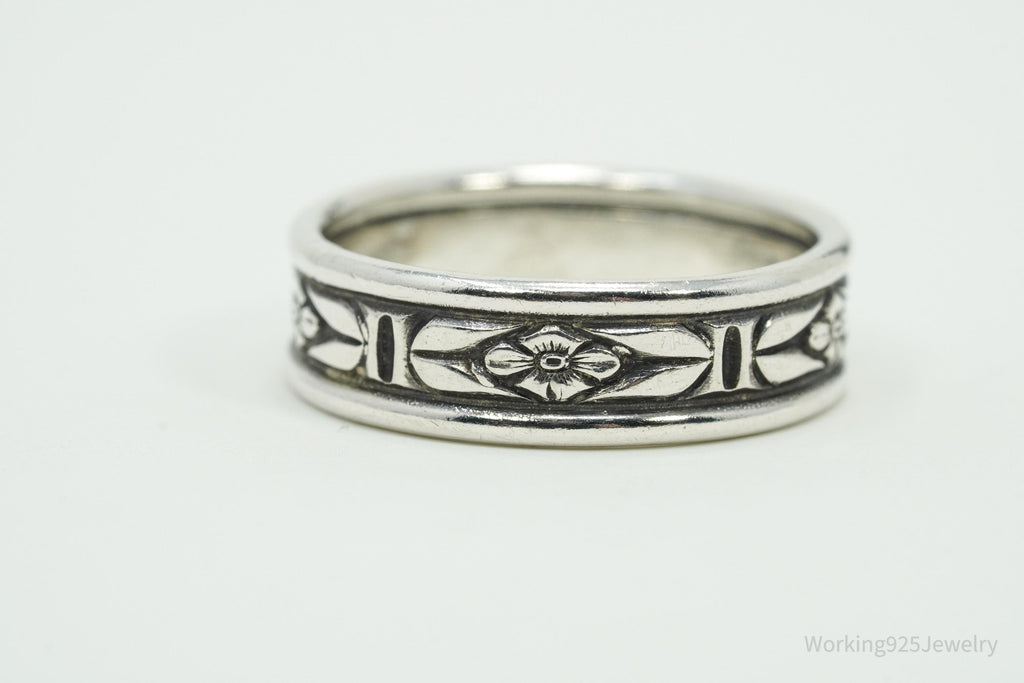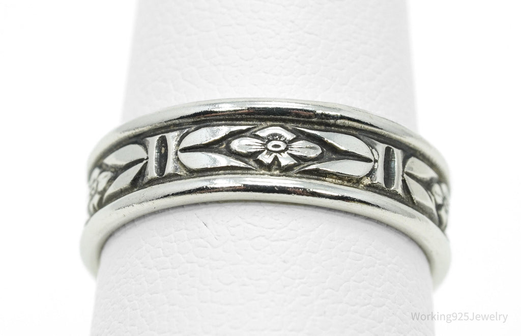 Antique Floral Pattern Silver Band Ring - Size 5
