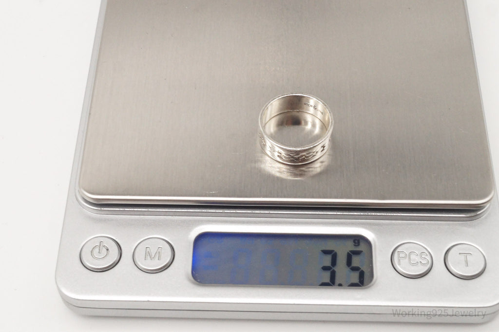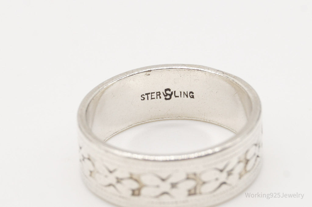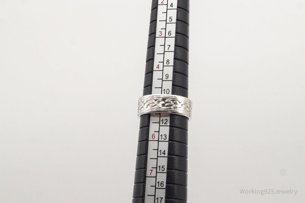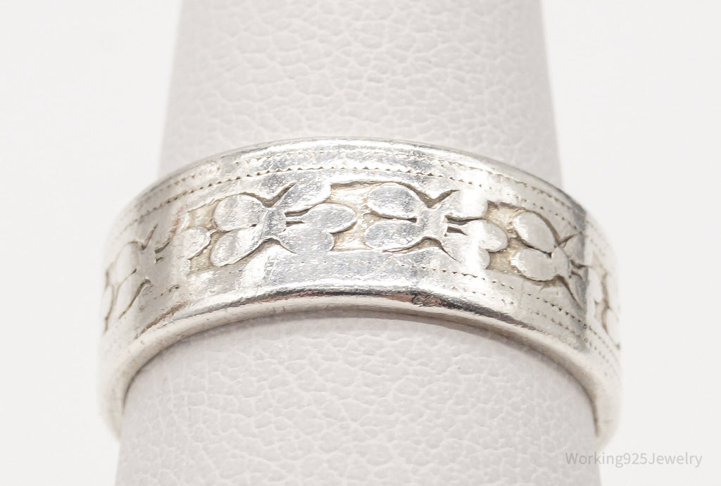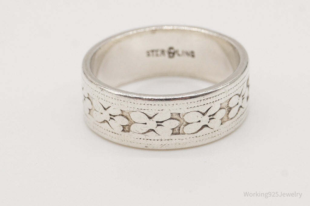 Antique Flowers Sterling Silver Band Ring - Size 5