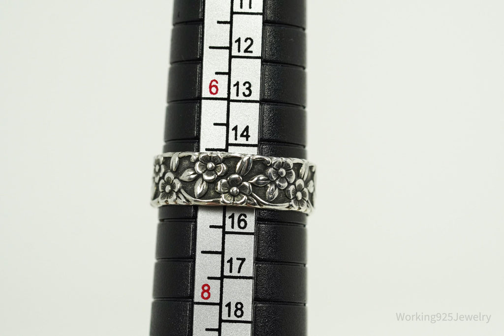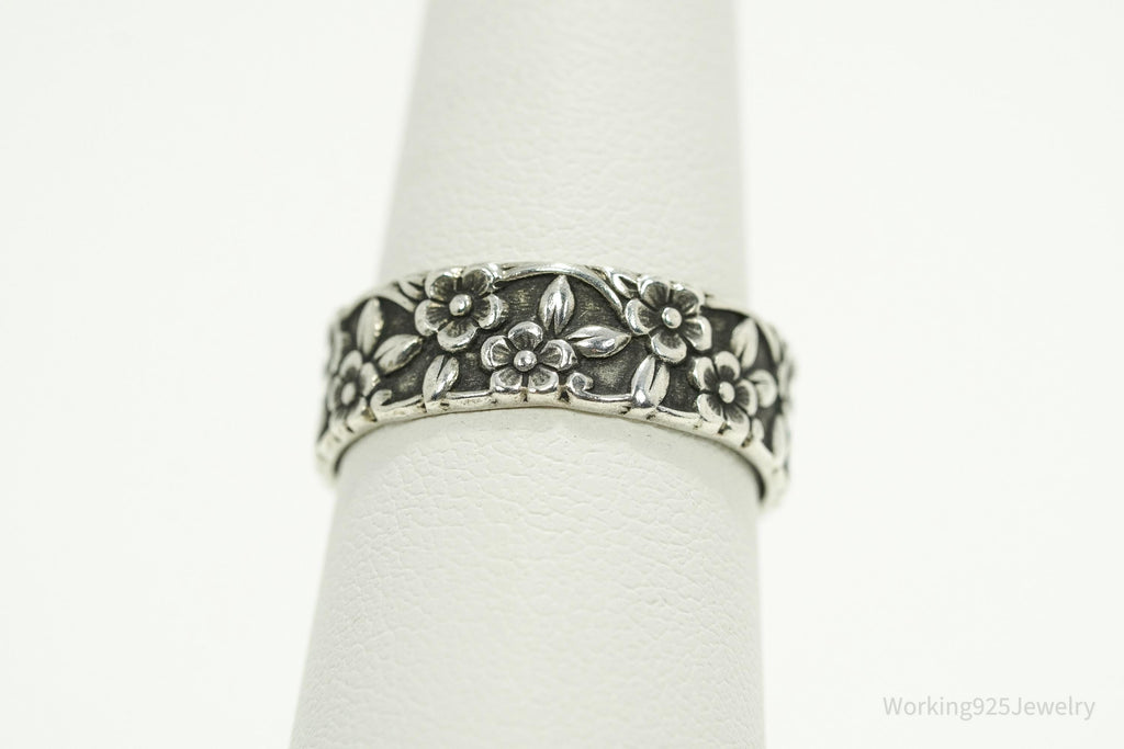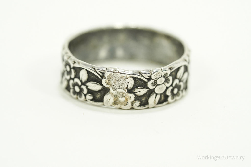 Antique Flowers Sterling Silver Band Ring - Size 7