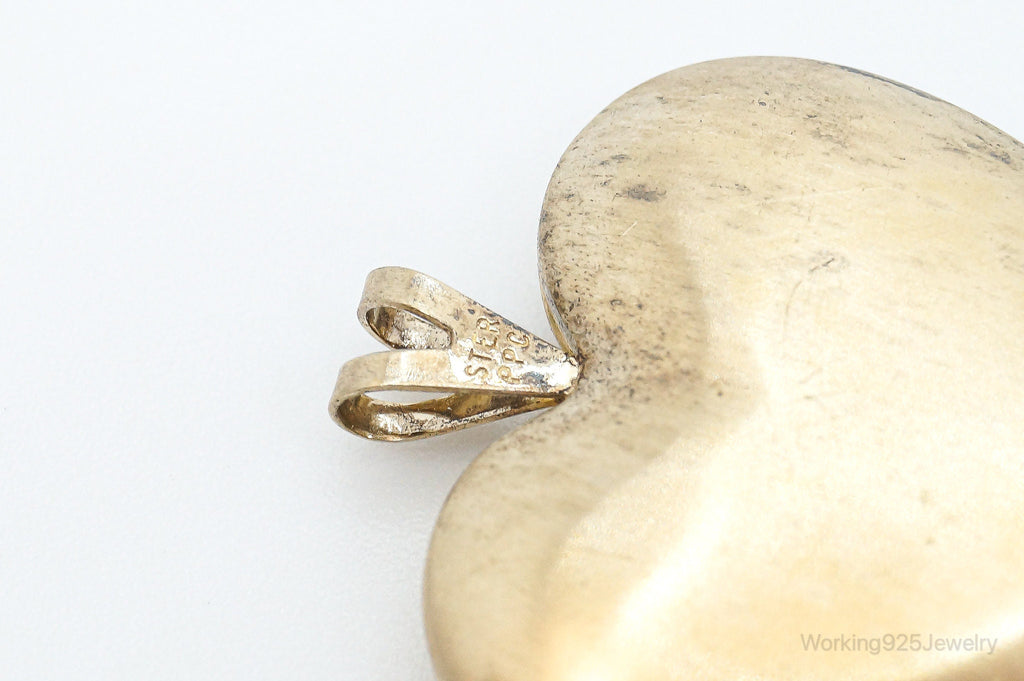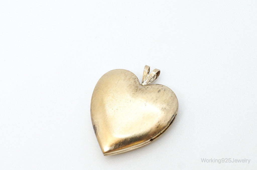 Antique GF Rose Etched Sterling Silver Heart Picture Locket Pendant