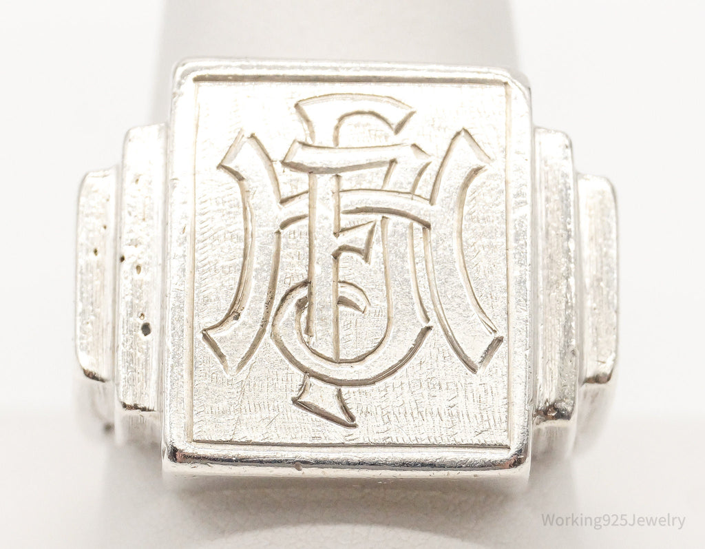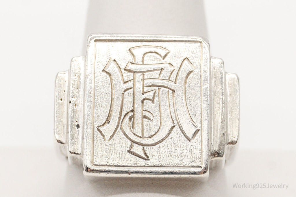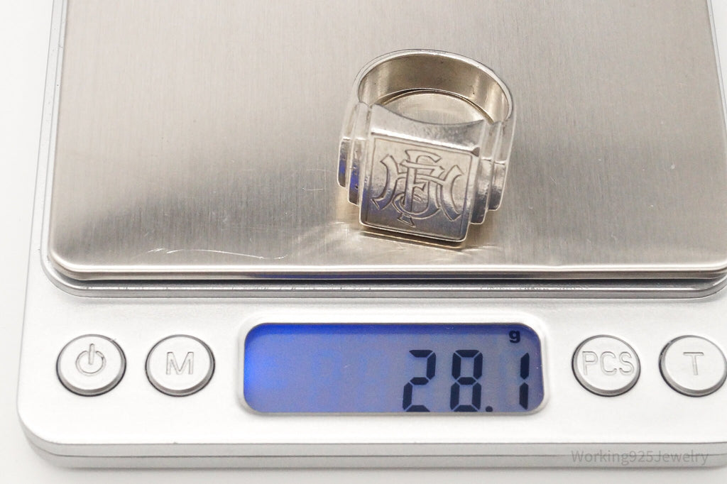 Antique Initials Letters 900 Silver Ring - Size 11.5