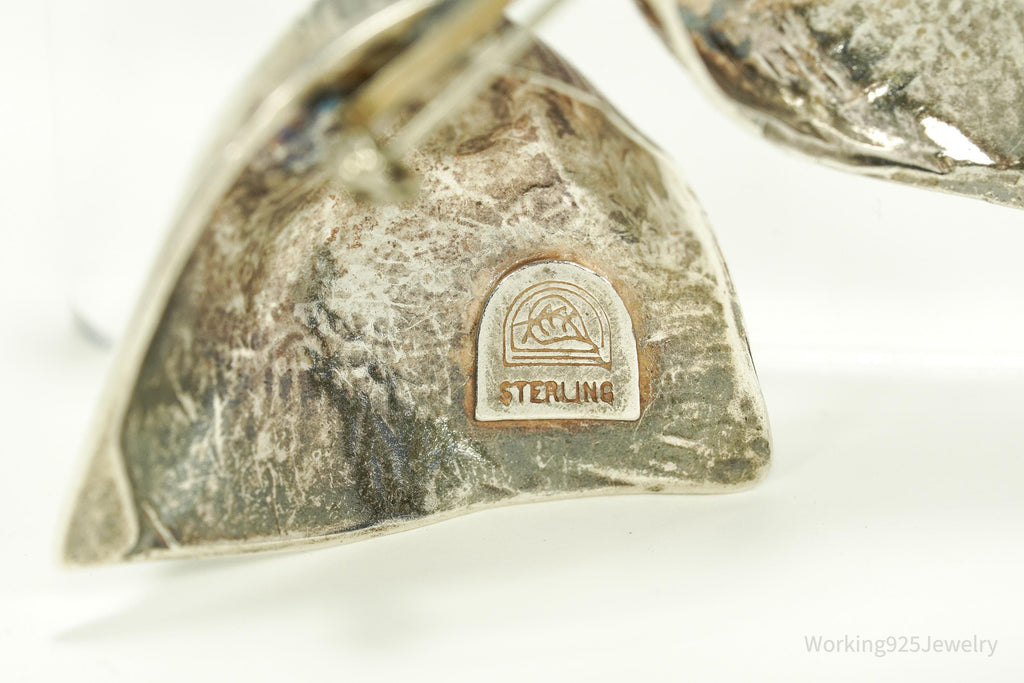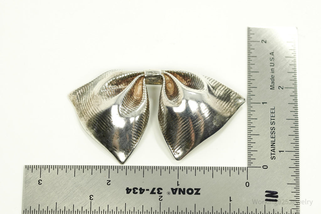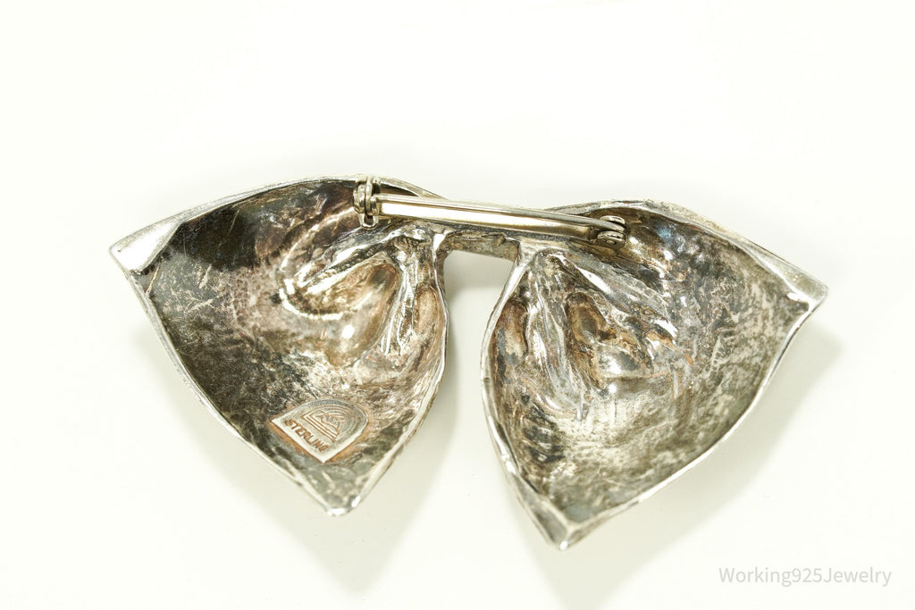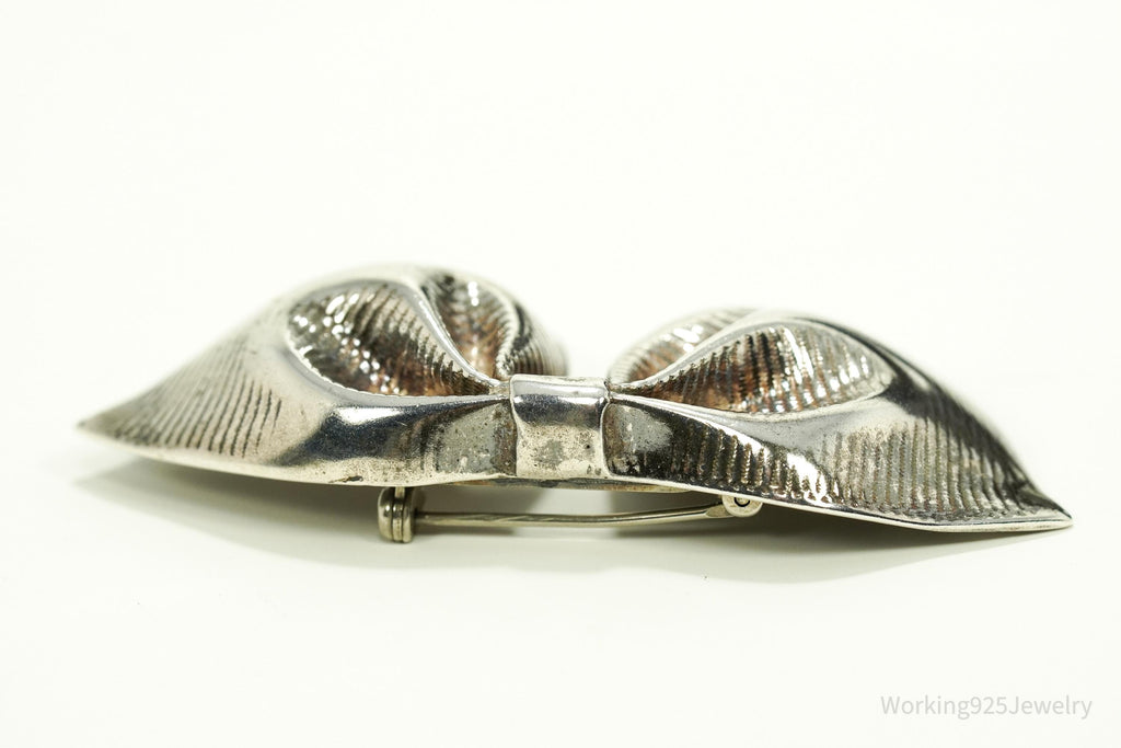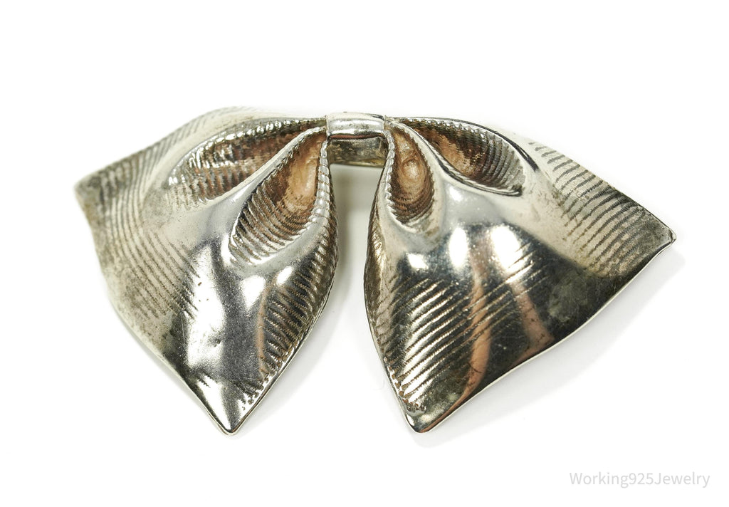 Antique Large Bow Tie Sterling Silver Brooch Pin