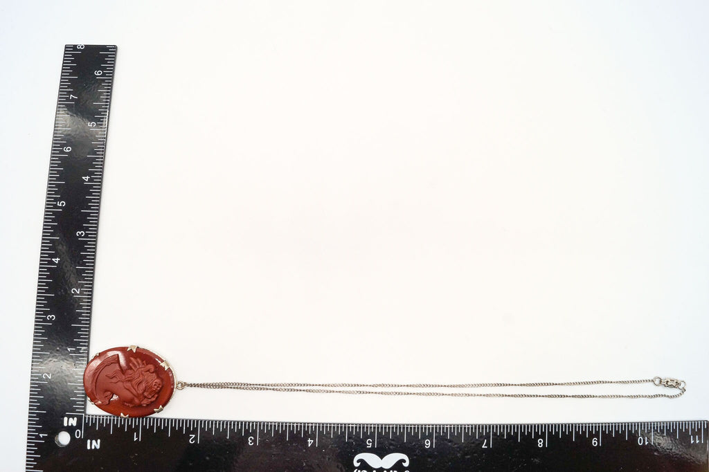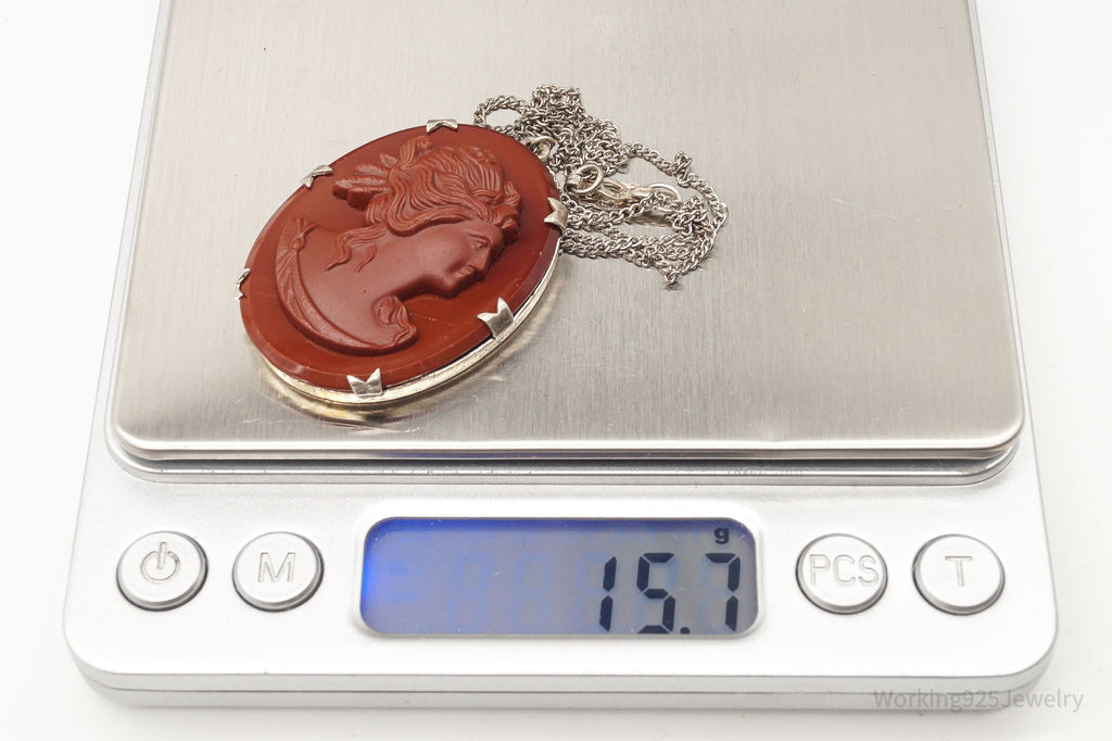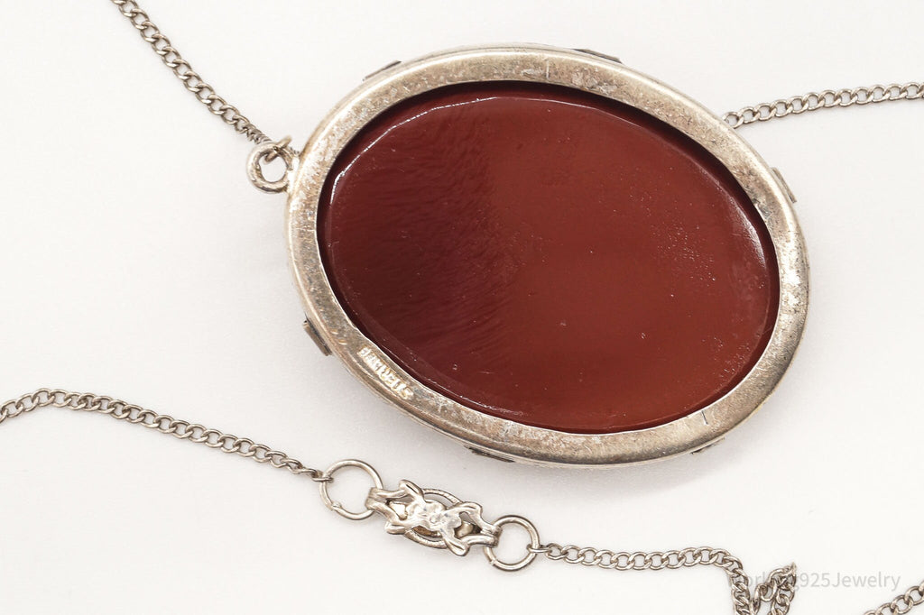 Antique Large Carved Stone Lady Cameo Sterling Silver Necklace
