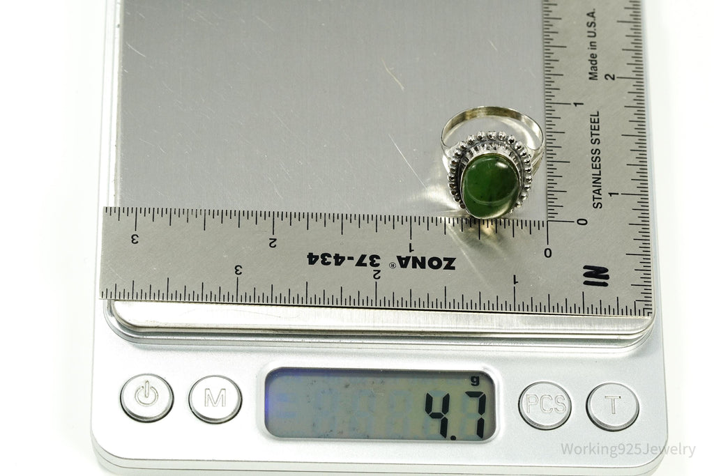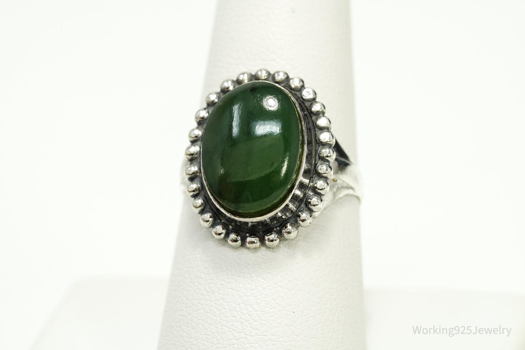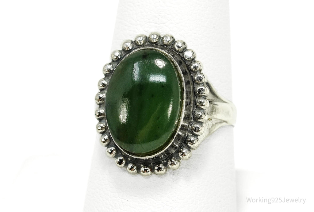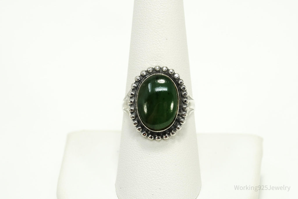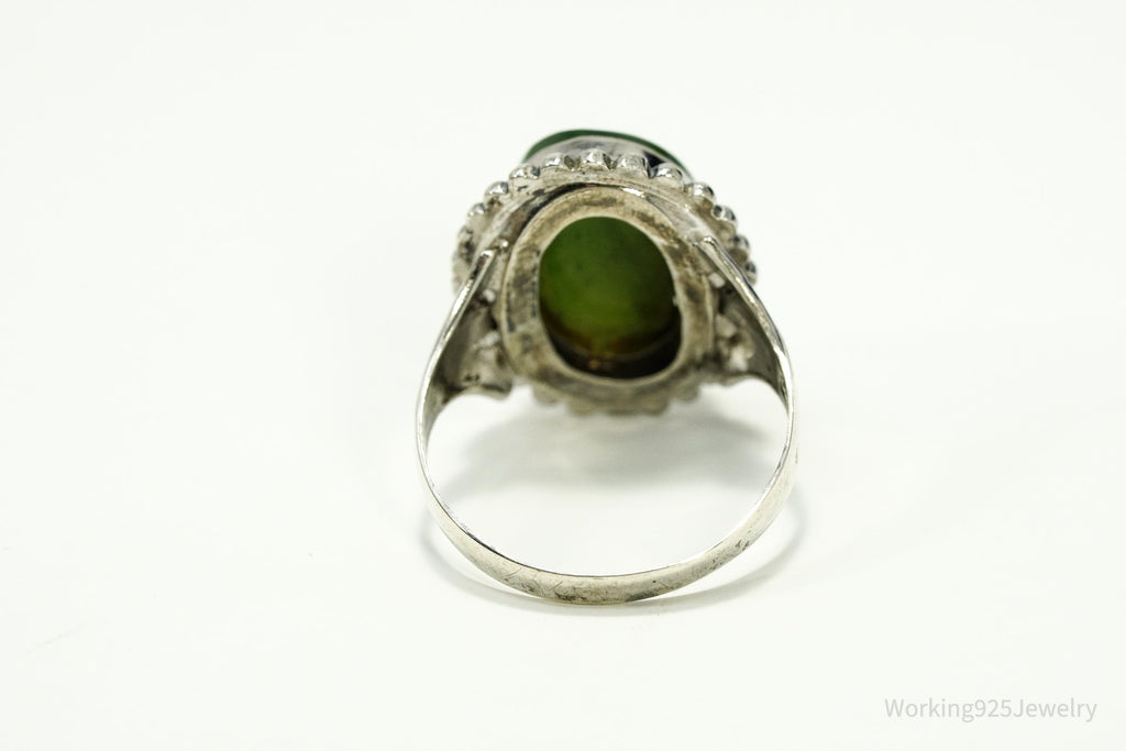 Antique Nephrite Jade Sterling Silver Ring - Size 8.25