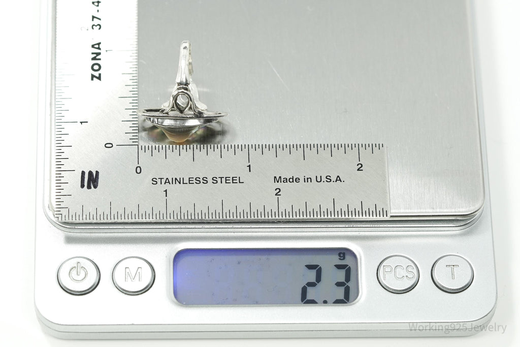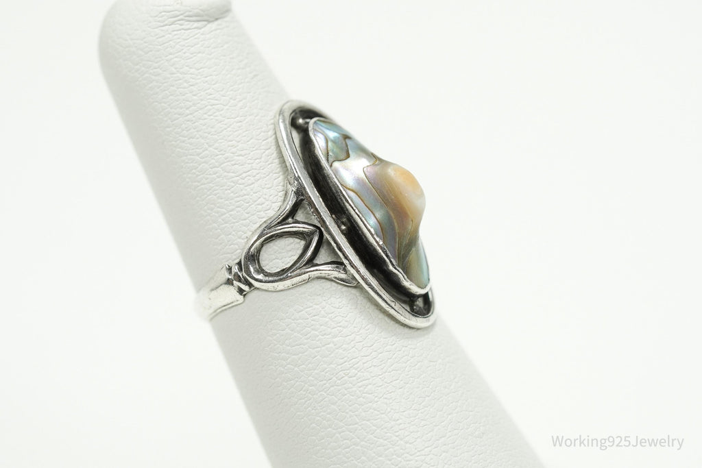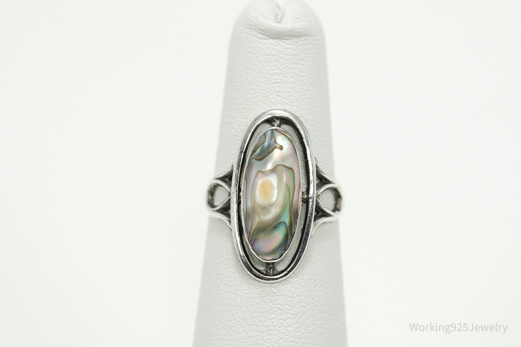 Antique Paua Abalone Shell Sterling Silver Ring - Size 5.25