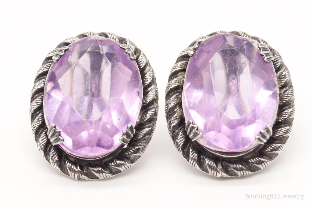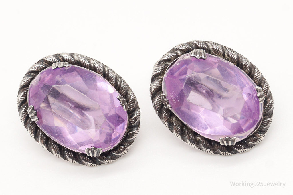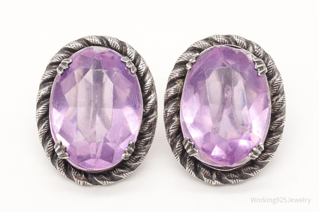 Antique Purple Faux Stone Sterling Silver Screw Back Earrings