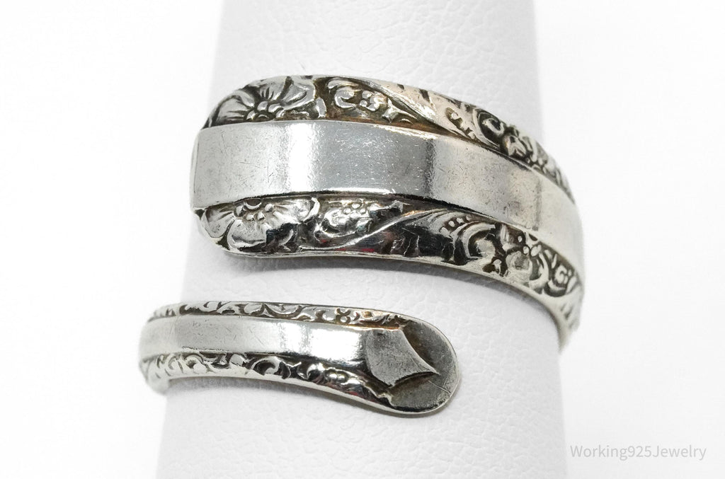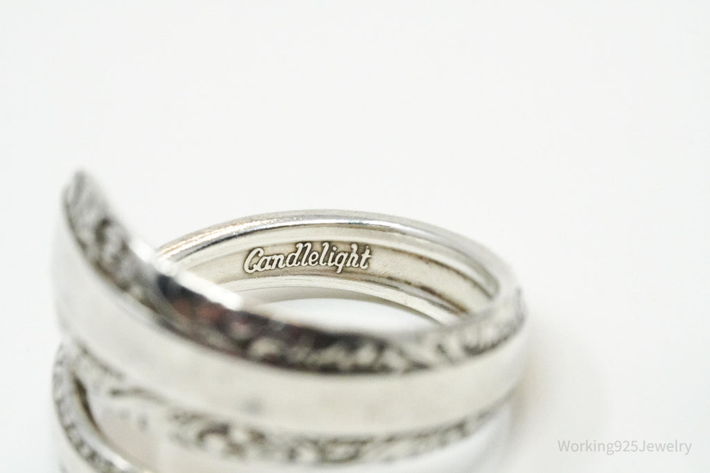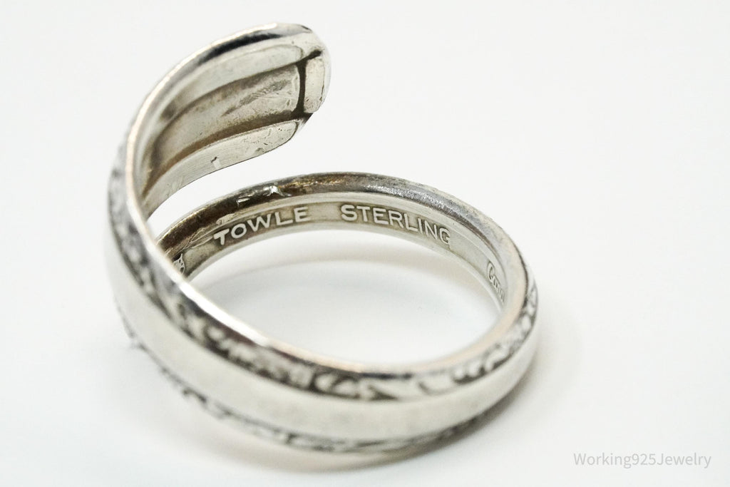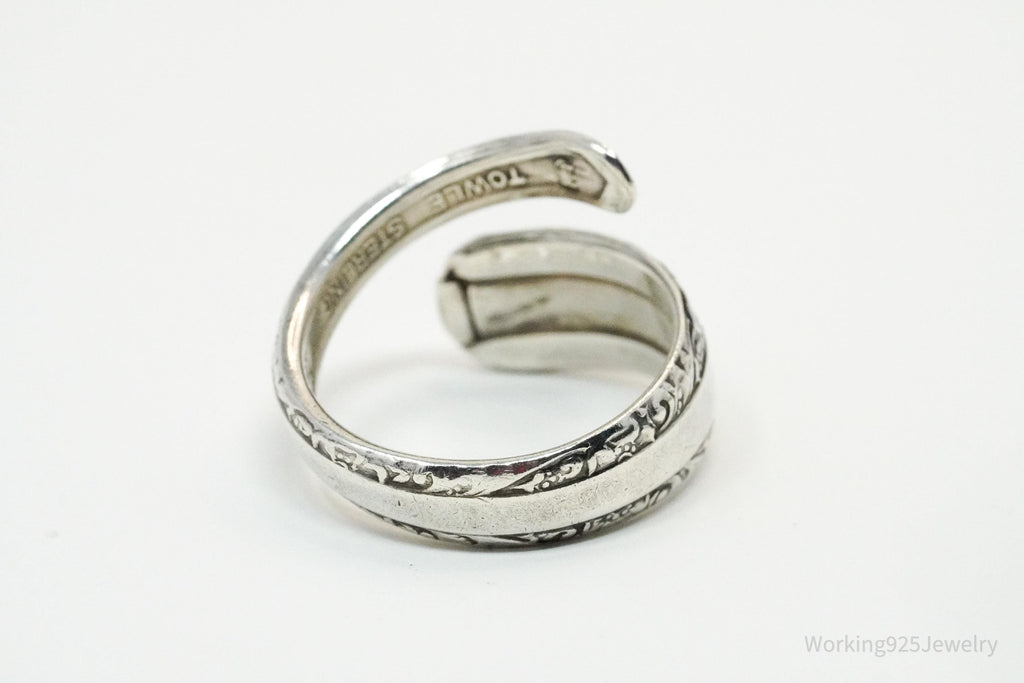 Antique TOWLE "Candlelight" Floral Sterling Silver Spoon Ring Size 8.5