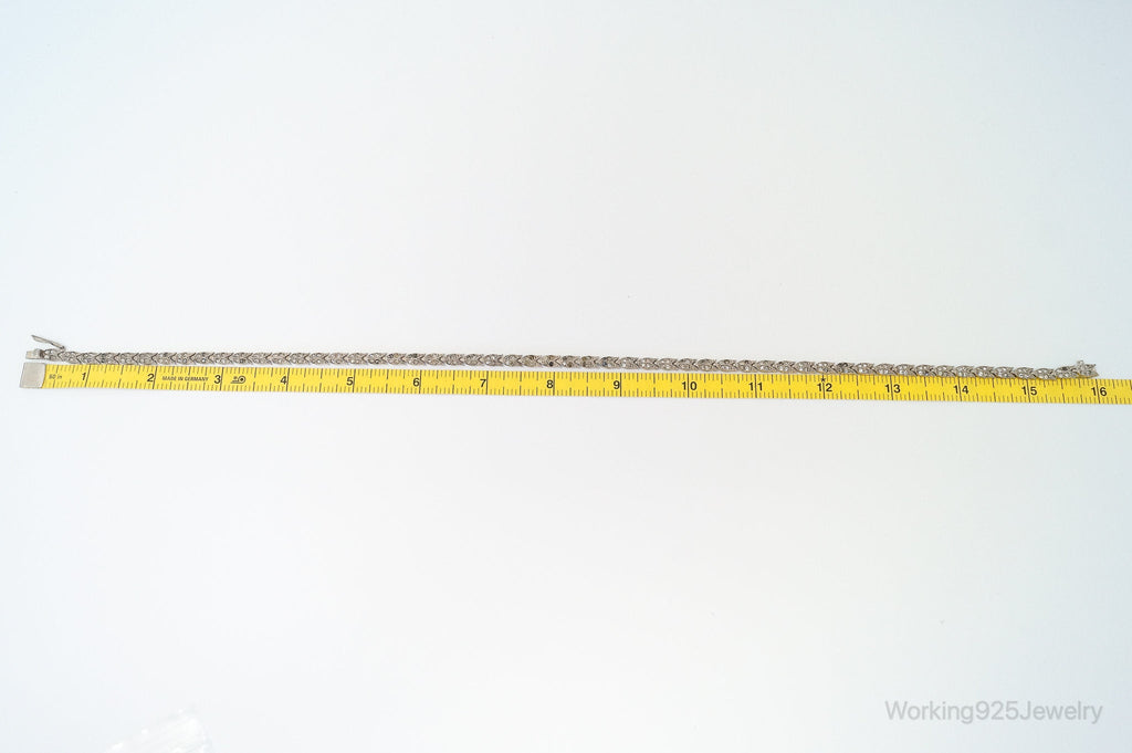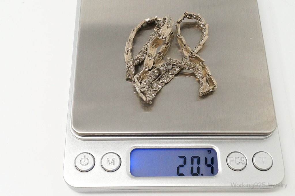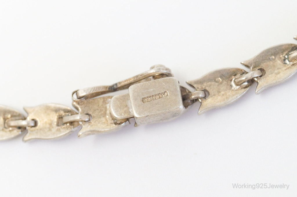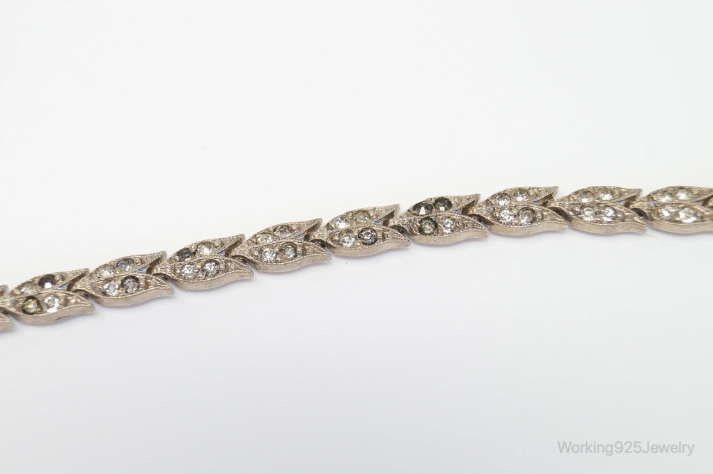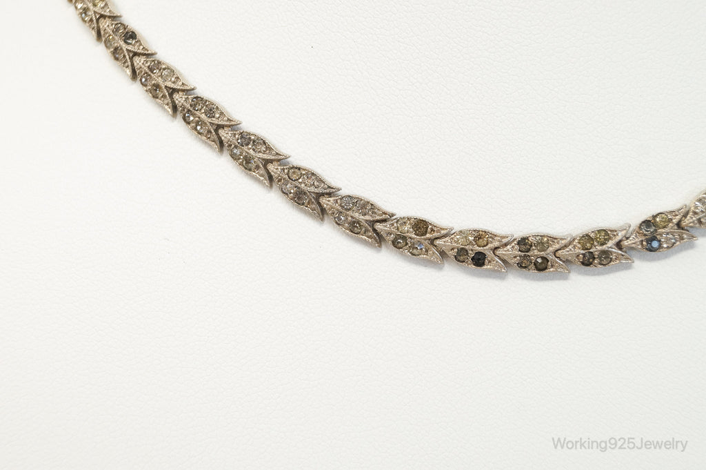Antique Tulip Flowers Rhinestone Sterling Silver Bib Necklace