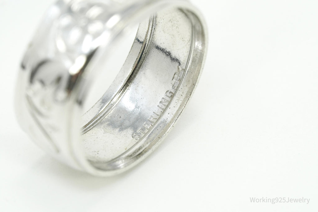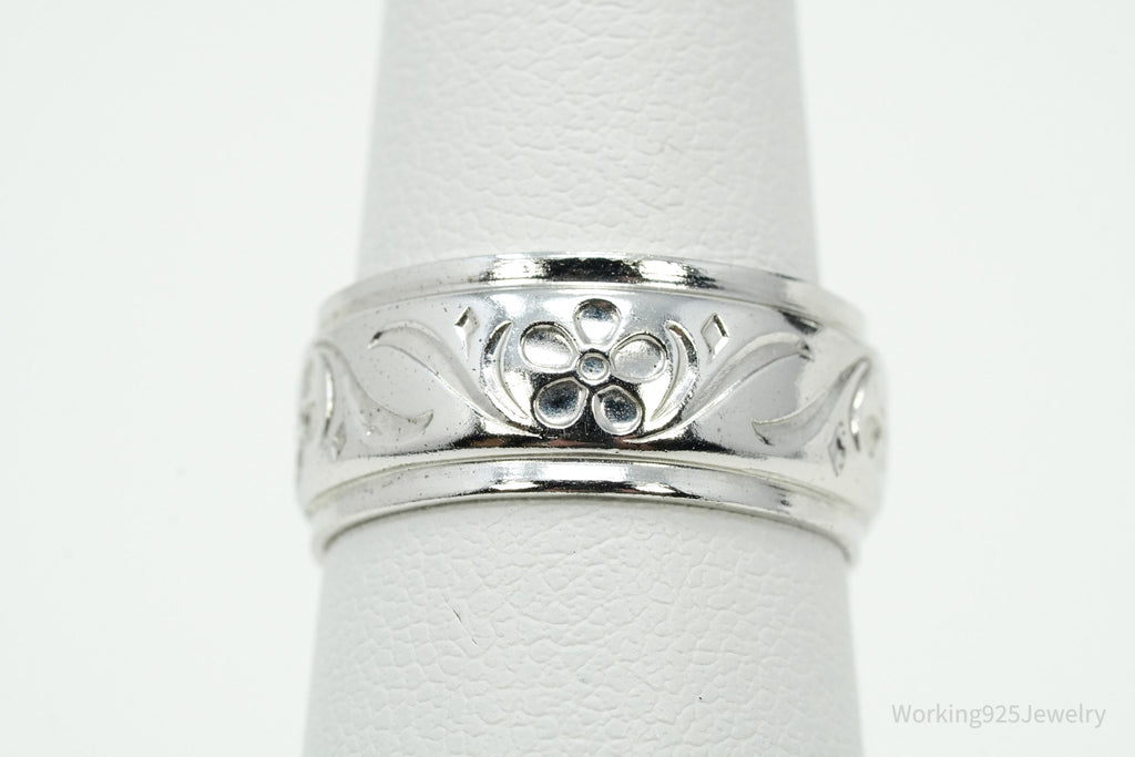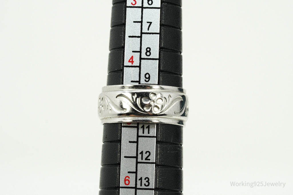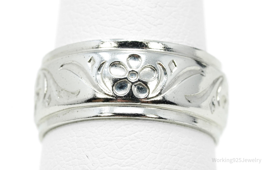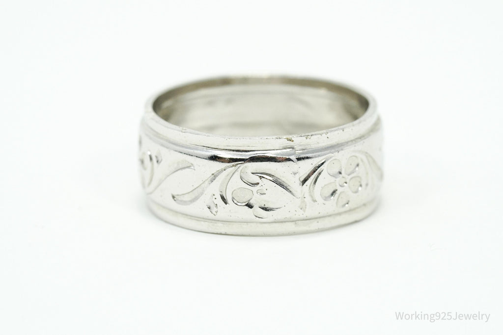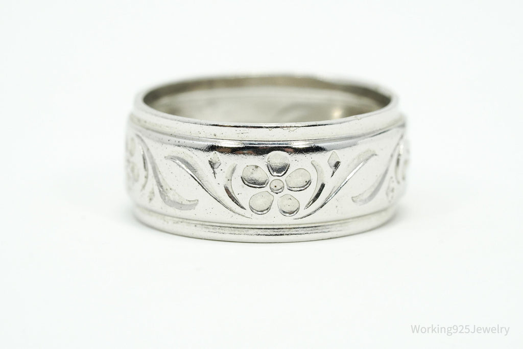 Antique Uncas Mfg. Co. Flowers Sterling Silver Band Ring - Size 5