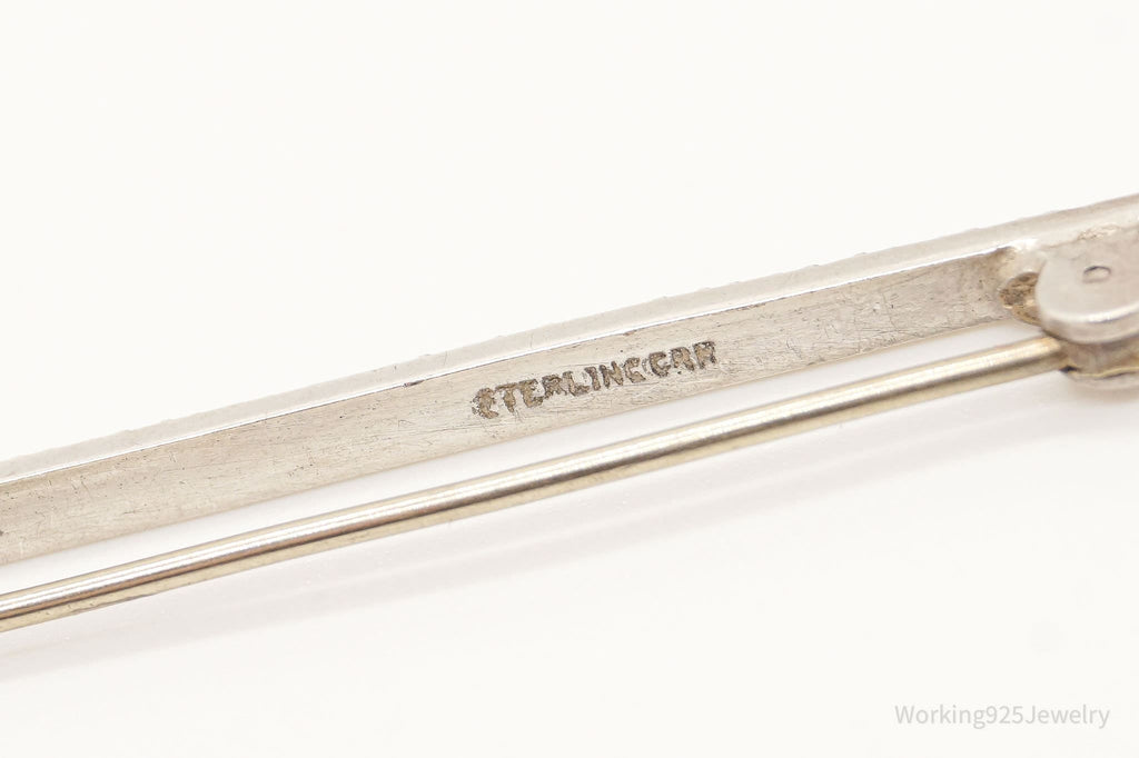 Antique Victorian Rhinestone Sterling Silver Brooch Pin Bar