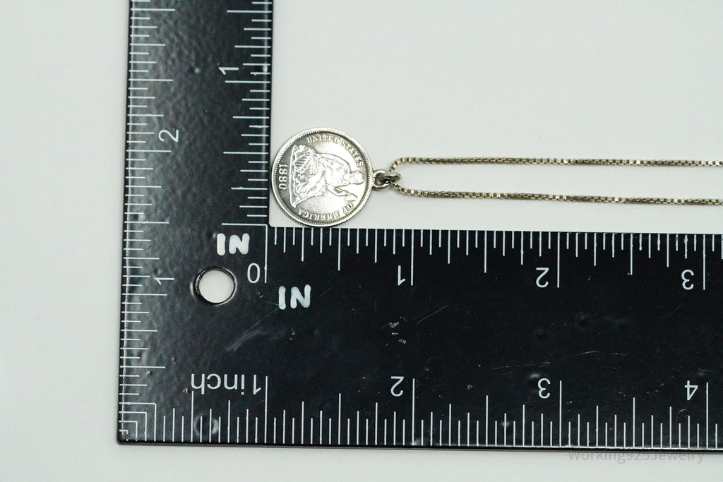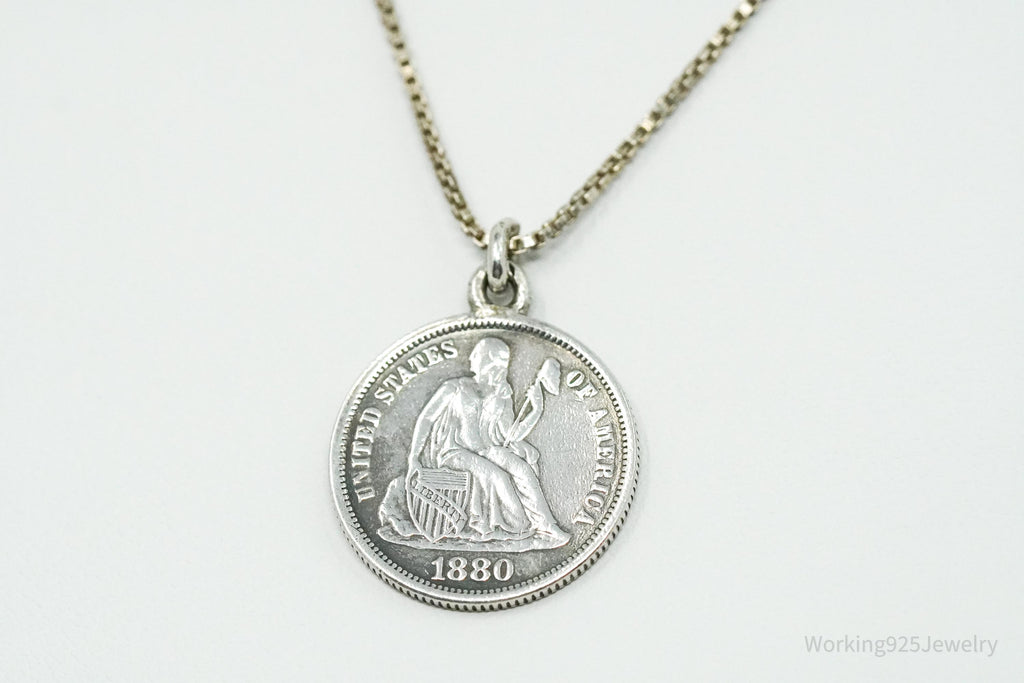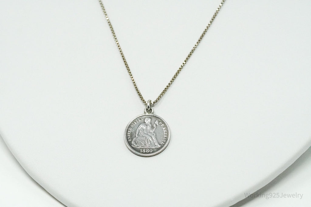 Antique Vintage 1880 Seated Liberty Dime Coin Sterling Silver Chain Necklace - 16"
