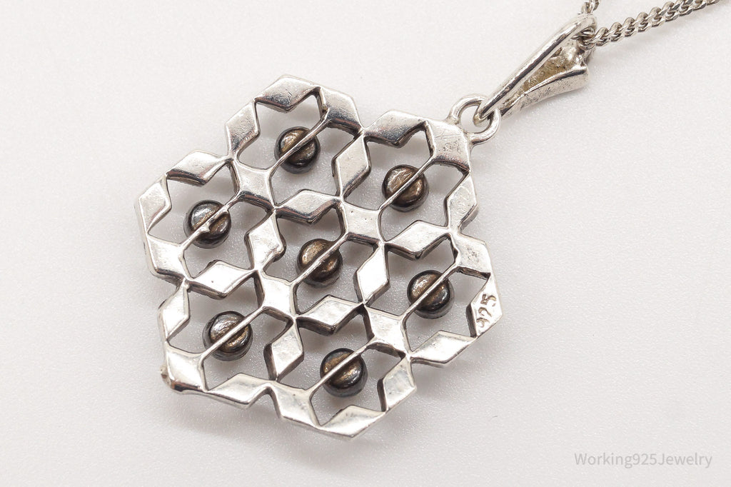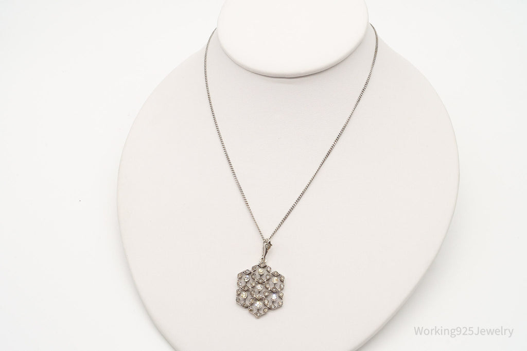 Antique Vintage Faux Diamonds Snowflake Sterling Silver Necklace